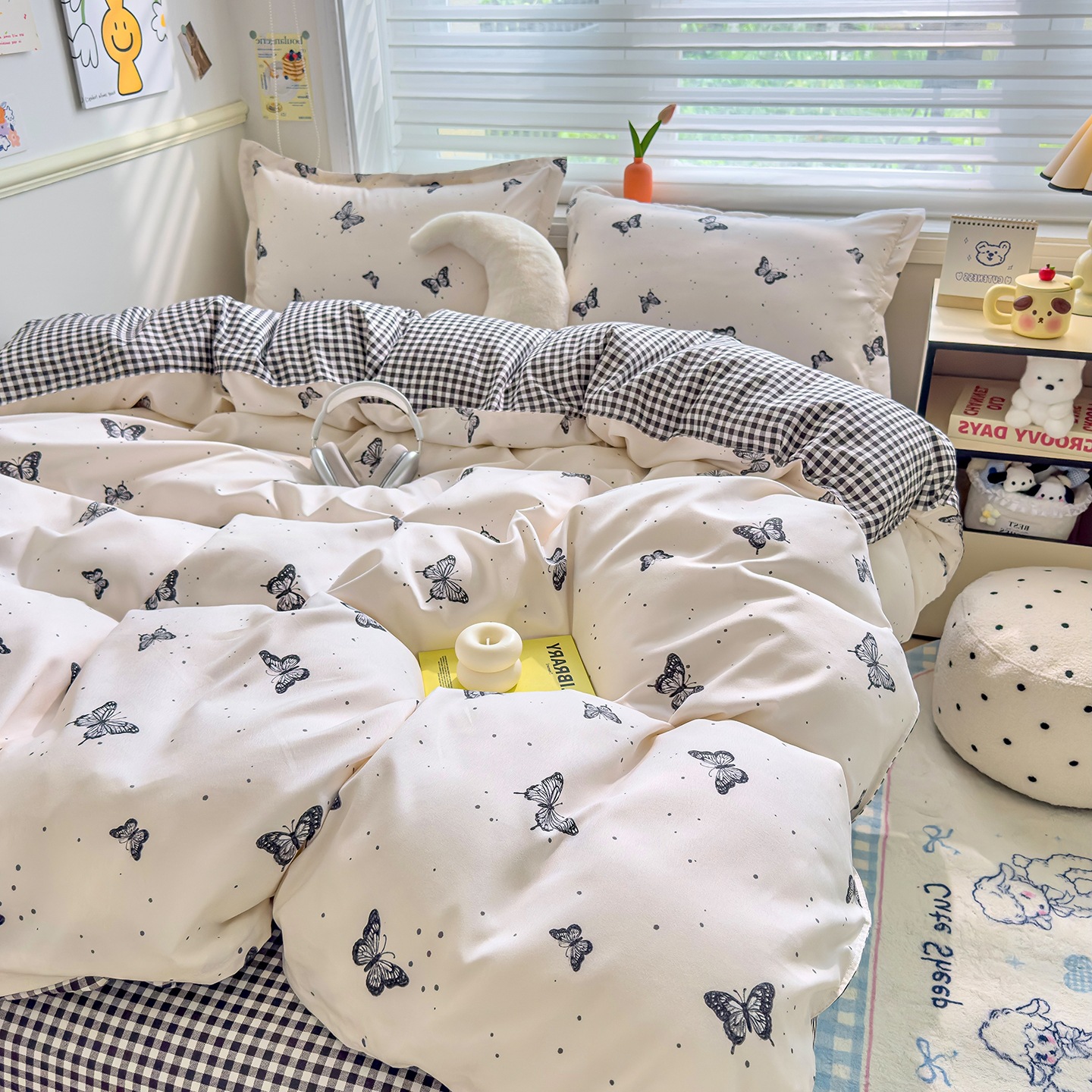 - Комплект из четырех предметов на 1,5 листа [пододеяльник 150*200, простыни 200*230, две наволочки]