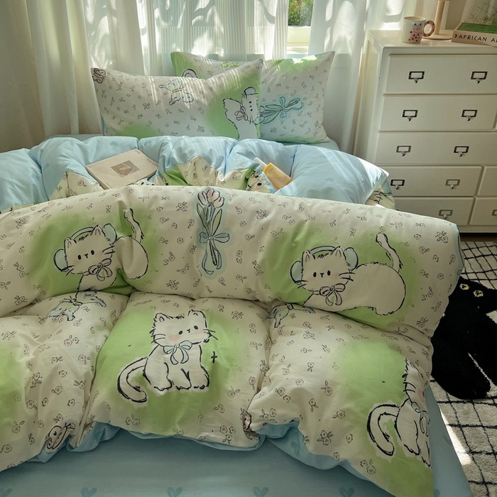 - Простыня 1,5 м, комплект из четырех предметов [додеяльник 200*230 простыней 230*245, наволочка 48*74*2]