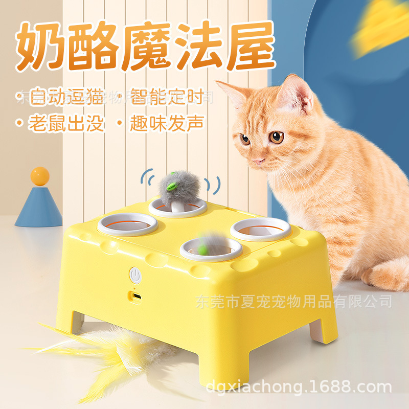 Главная страница > Игрушка для кошек 3 в 1 Cheese House Smart Cat Toy Whack-a-mole Squeaky Feather Cat Toy, Amazon HOT продажи