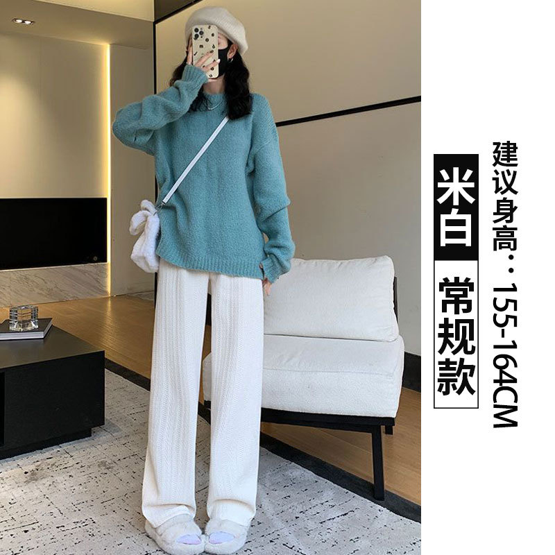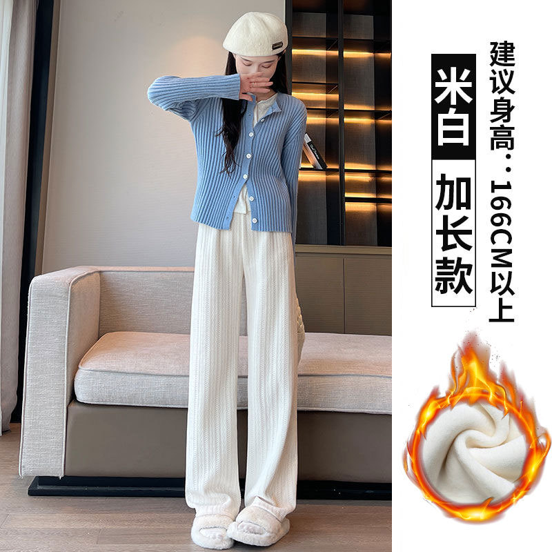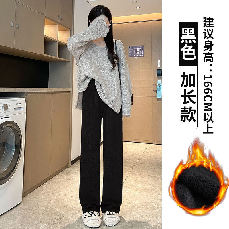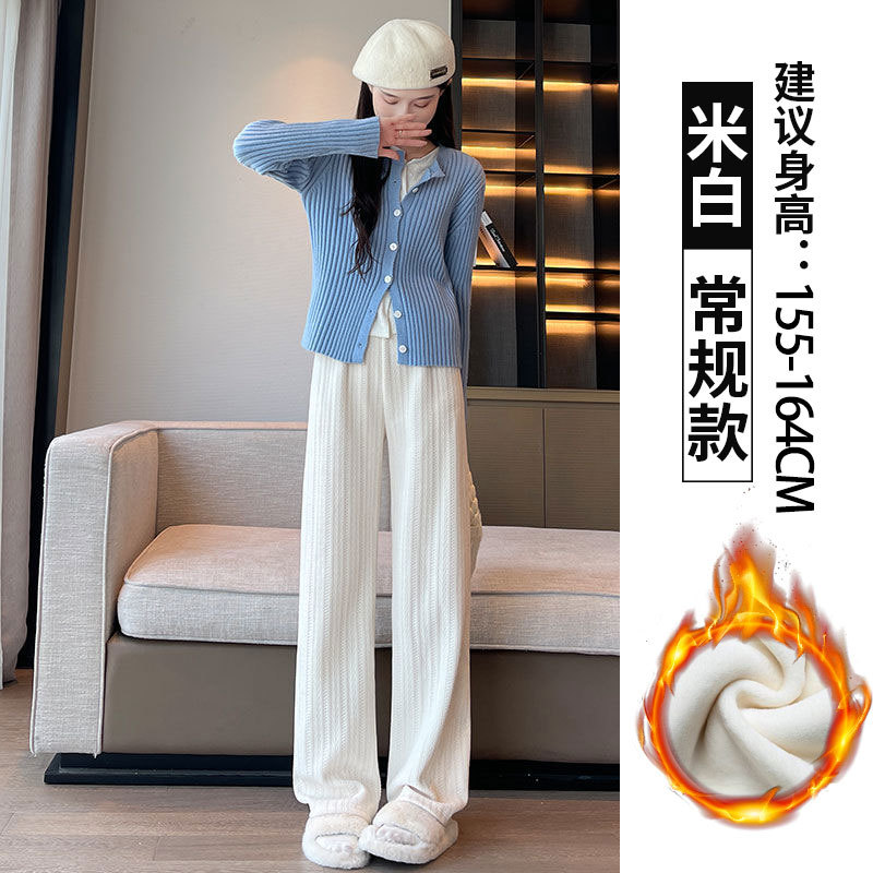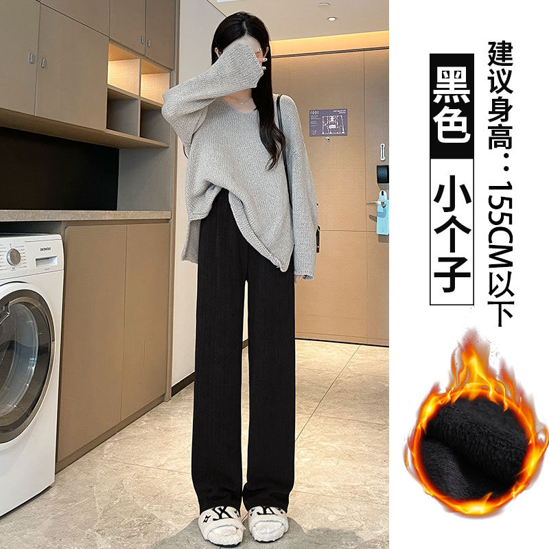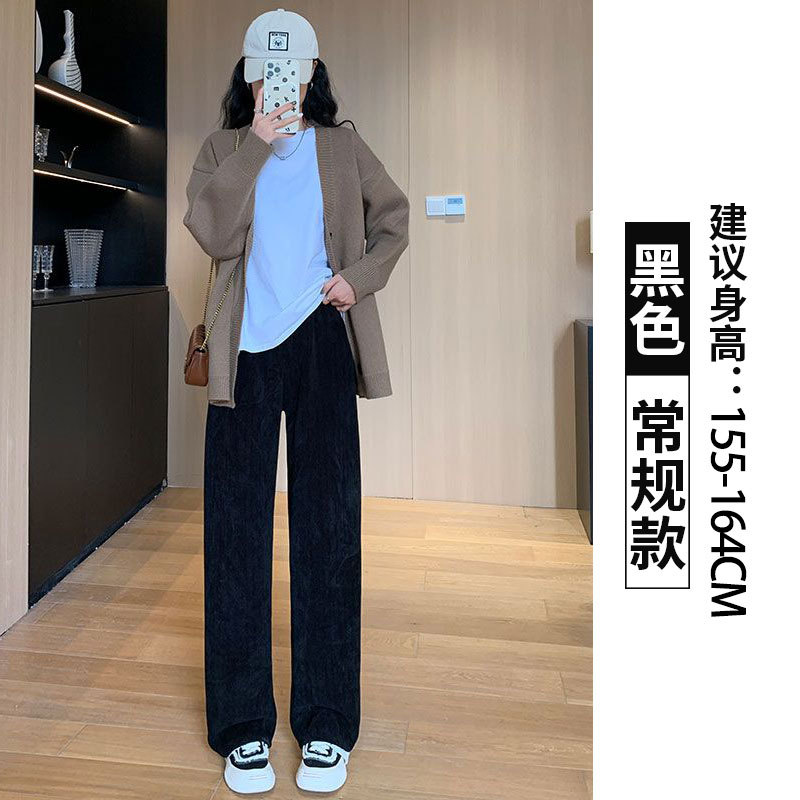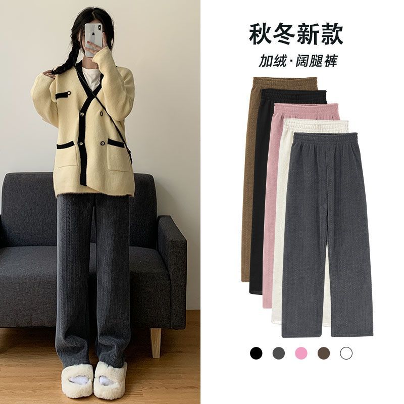 Главная страница > Брюки с широкими штанинами из пшеничной синели осень и зима Новая прямая трансляция в том же стиле с высокой талией и драпировкой прямые Узкие повседневные брюки на флисовой подкладке для женщин