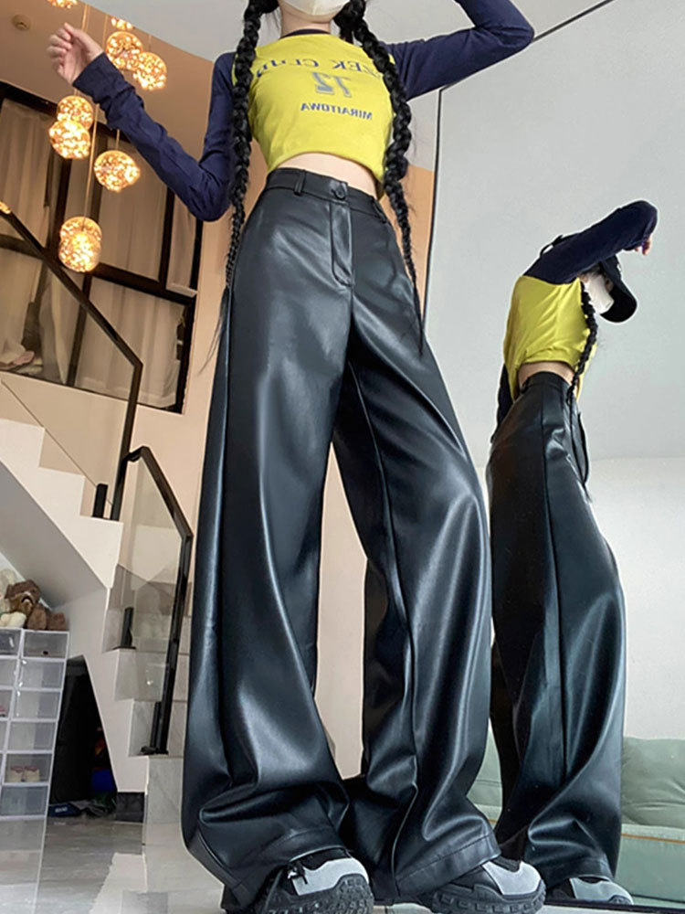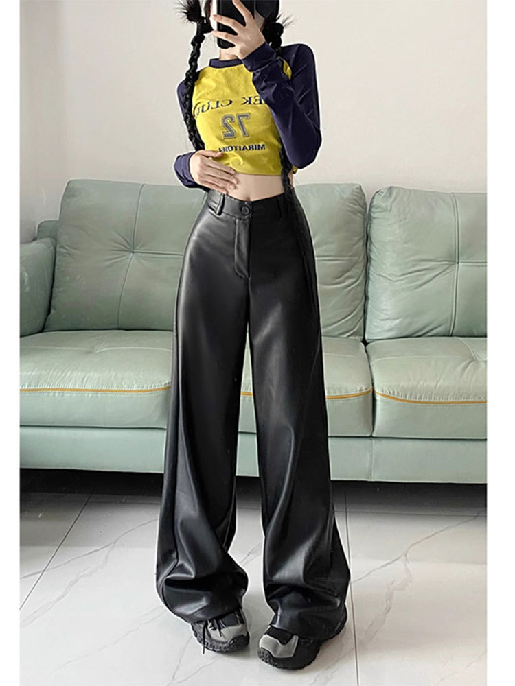 Главная страница > Черные кожаные брюки с высокой талией прямые женские осенние толстые сестры большого размера