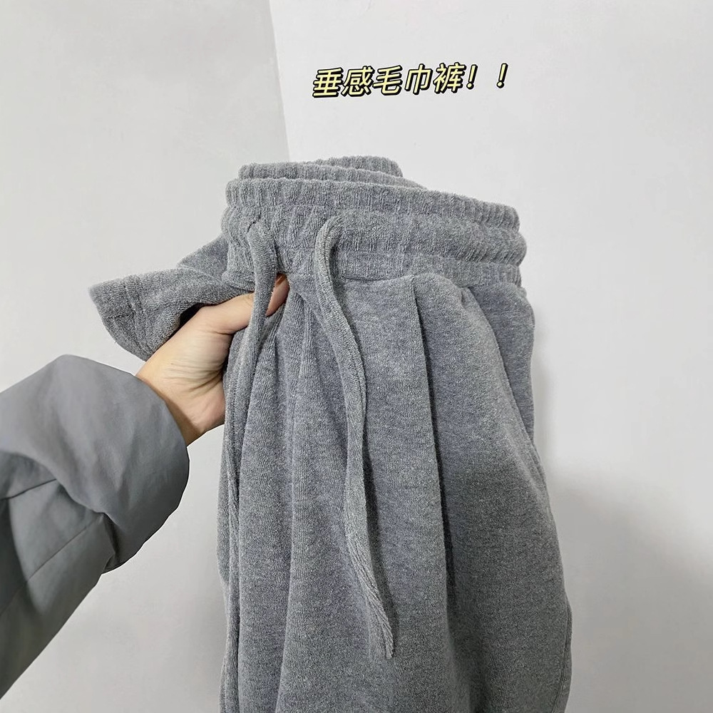 Свободные серые брюки-полотенца, утолщенные и на флисовой подкладке, осень-зима 2025 года, утягивающие широкие брюки для женщин невысокого роста.