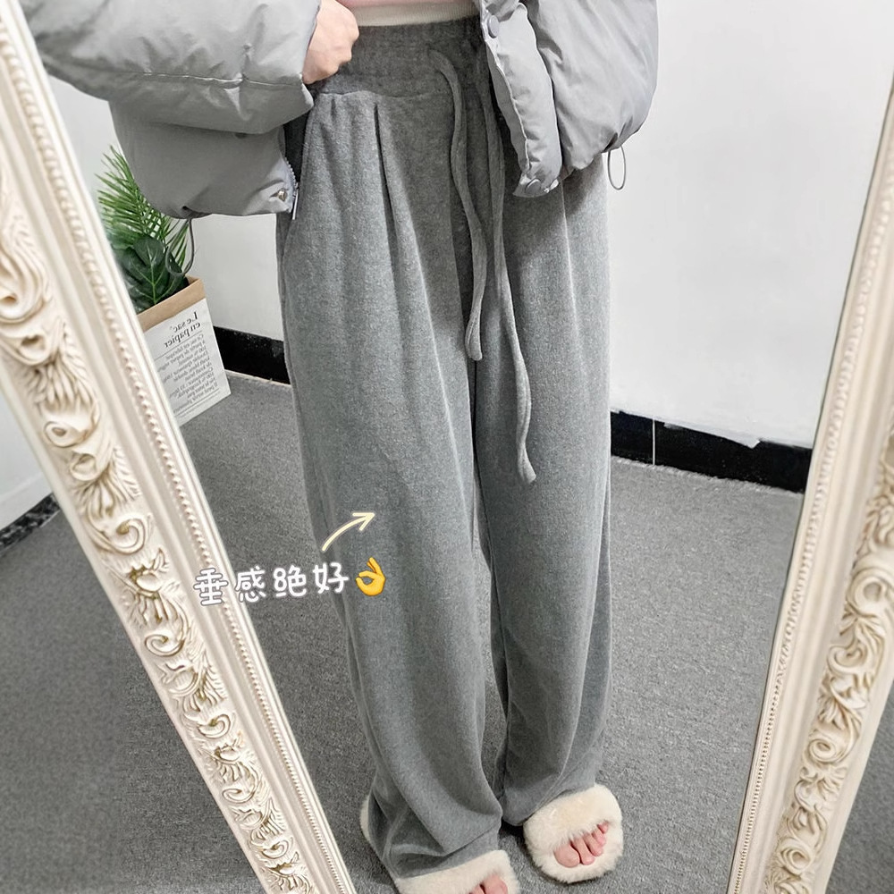 Главная страница > Свободные серые брюки-полотенца, утолщенные и на флисовой подкладке, осень-зима 2025 года, утягивающие широкие брюки для женщин невысокого роста.