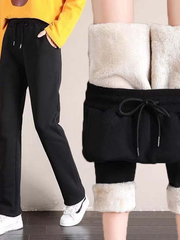 Главная страница > Новые бархатные брюки из ягненка, женские осенне-зимние Утепленные теплые хлопковые брюки с высокой талией, спортивные брюки на флисовой подкладке, Свободные повседневные спортивные штаны