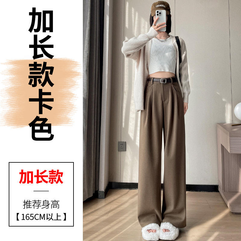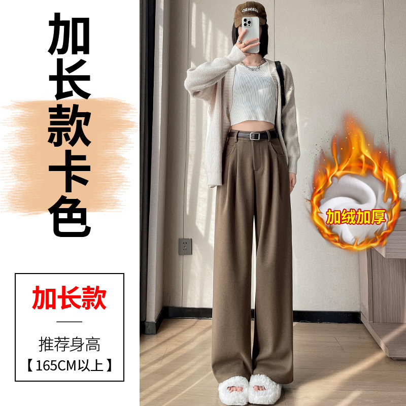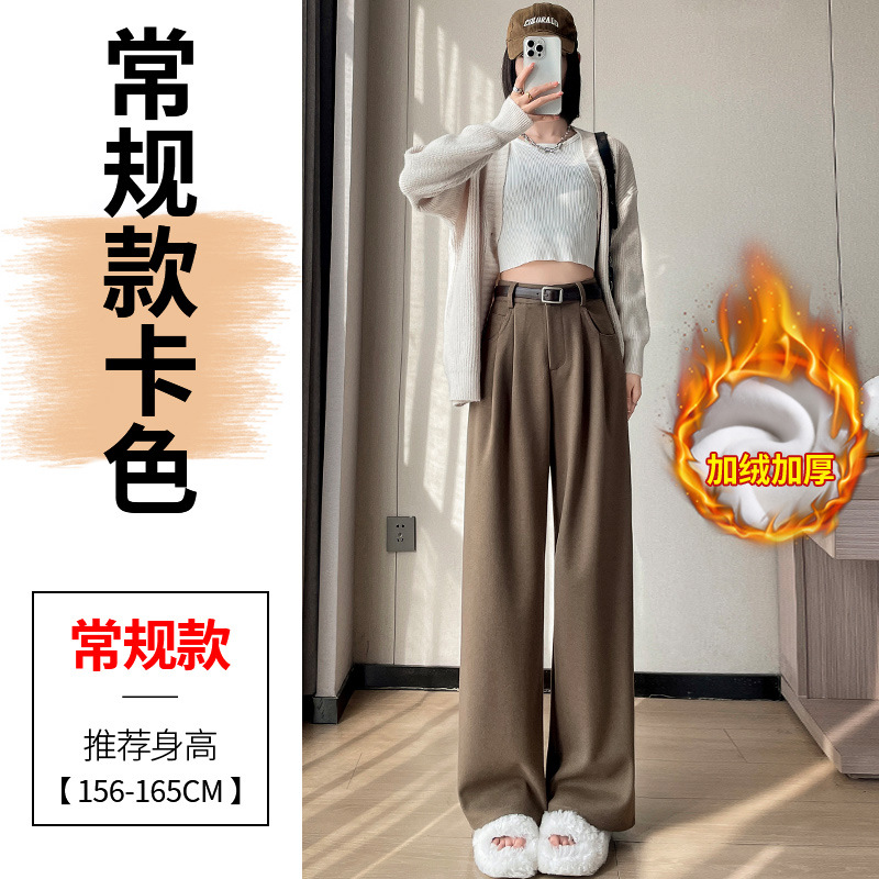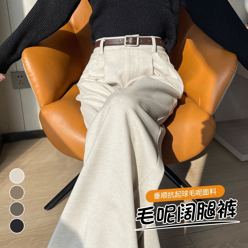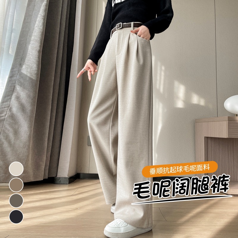 Главная страница > Широкие брюки для женщин, осень-зима 2025, новые шерстяные брюки с высокой талией и флисом, свободные прямые брюки-костюм, которые придают ногам удлиненный вид.