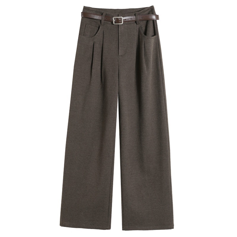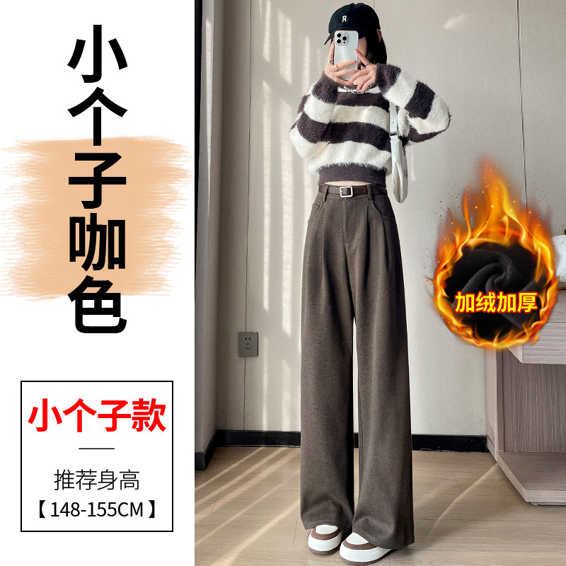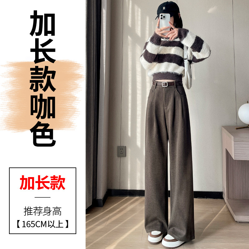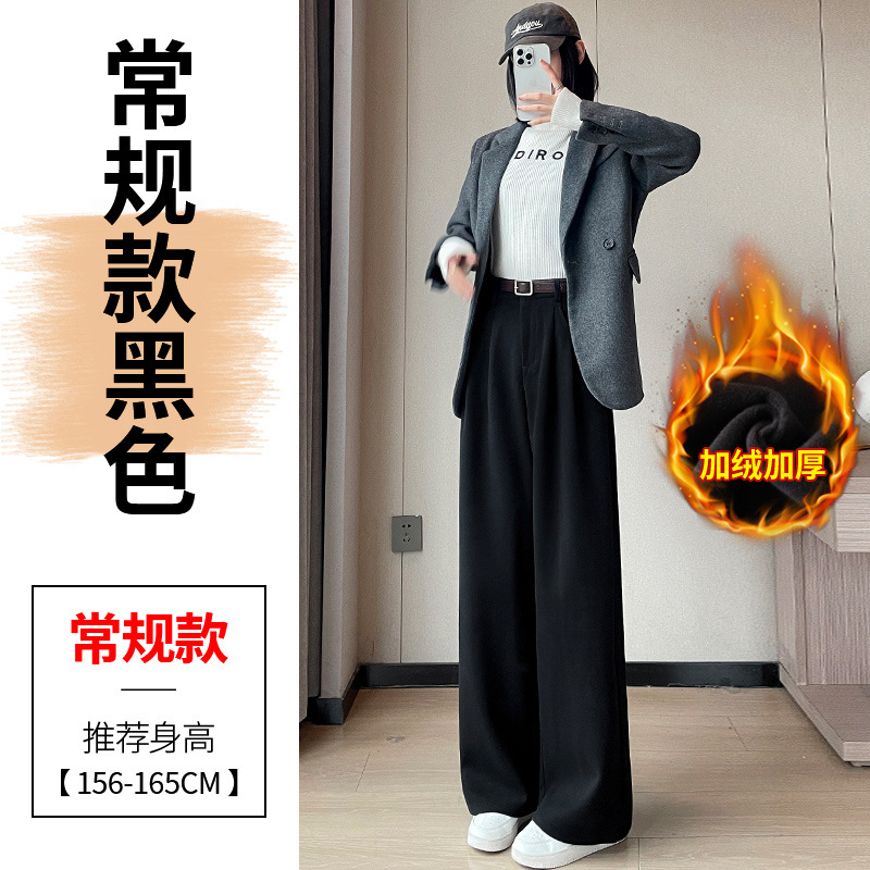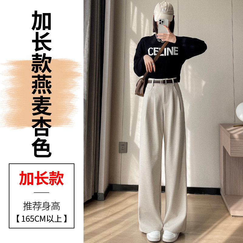 Главная страница > Широкие брюки для женщин, осень-зима 2025, новые шерстяные брюки с высокой талией и флисом, свободные прямые брюки-костюм, которые придают ногам удлиненный вид.