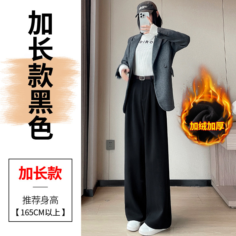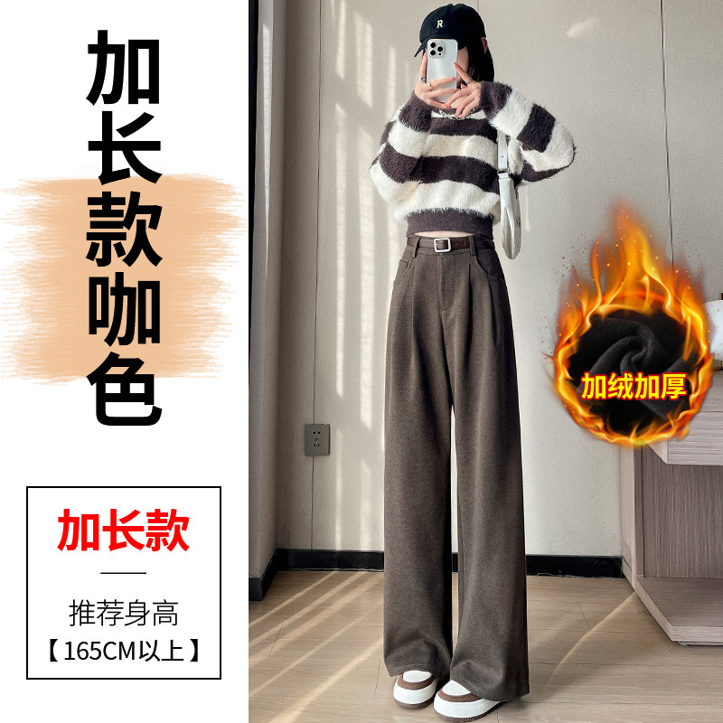Широкие брюки для женщин, осень-зима 2025, новые шерстяные брюки с высокой талией и флисом, свободные прямые брюки-костюм, которые придают ногам удлиненный вид.