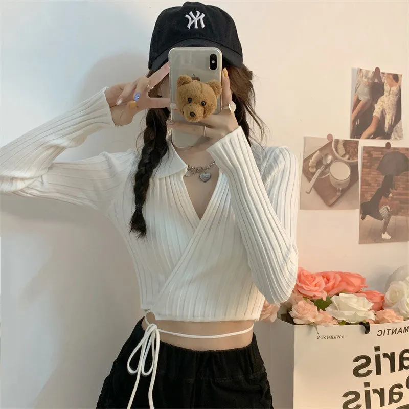 Главная страница > Белый кардиган-свитер на шнуровке для женщин Весна 2023 новый европейский и американский горячий укороченный Вязаный топ для девочек, модный для верхней одежды