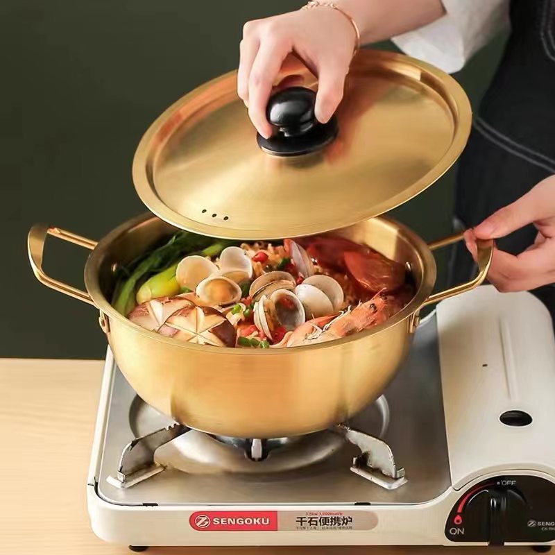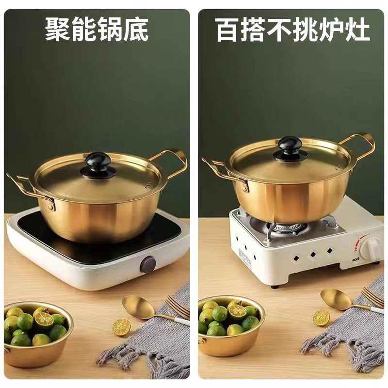 Главная страница > Корейский горшок рамэн из нержавеющей стали с домашней крышкой золотой двойной ушей суповый горшок утолщенный сетчатый красный горшок с лапшой быстрого приготовления оптом