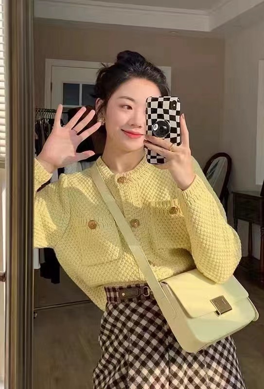 Однотонное маленькое ароматное стильное пальто Женская Осень 2023 Новый вязаный кардиган с коротким смыслом ленивый ветер свитер пальто оптом