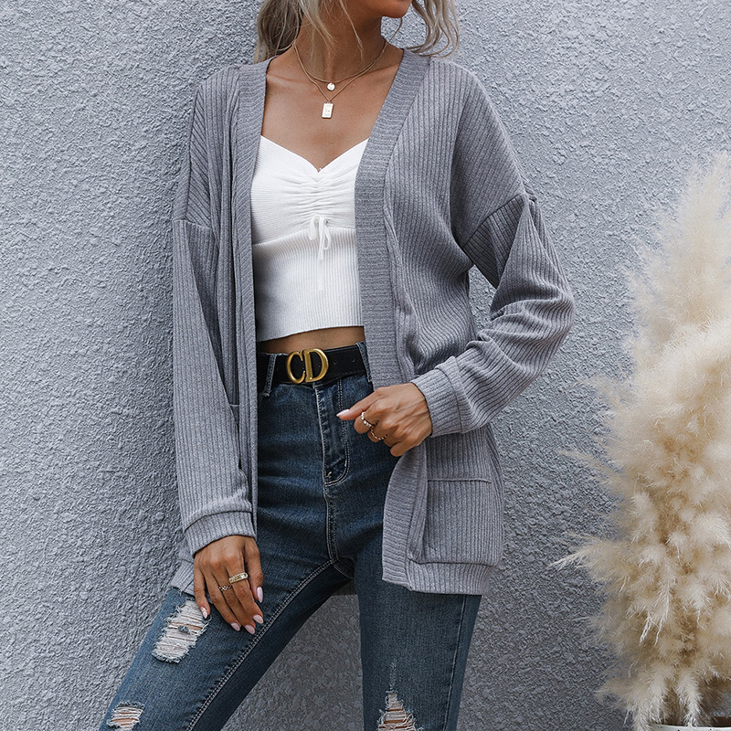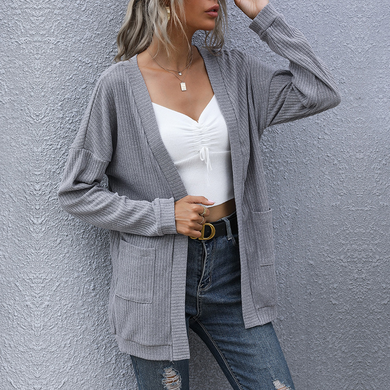 Главная страница > Amazon Independent Station трансграничный осенне-зимний Европейский и американский Повседневный Женский базовый однотонный длинный свитер-Кардиган с длинным рукавом