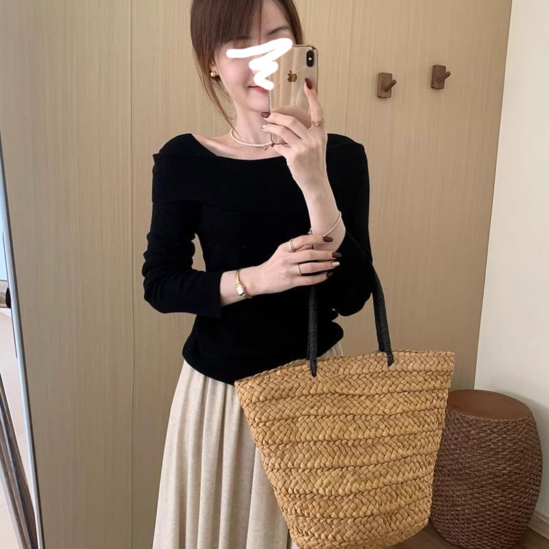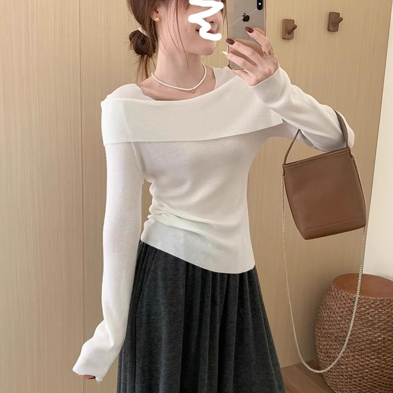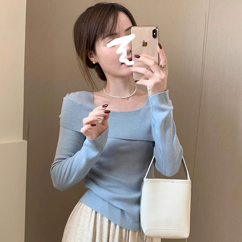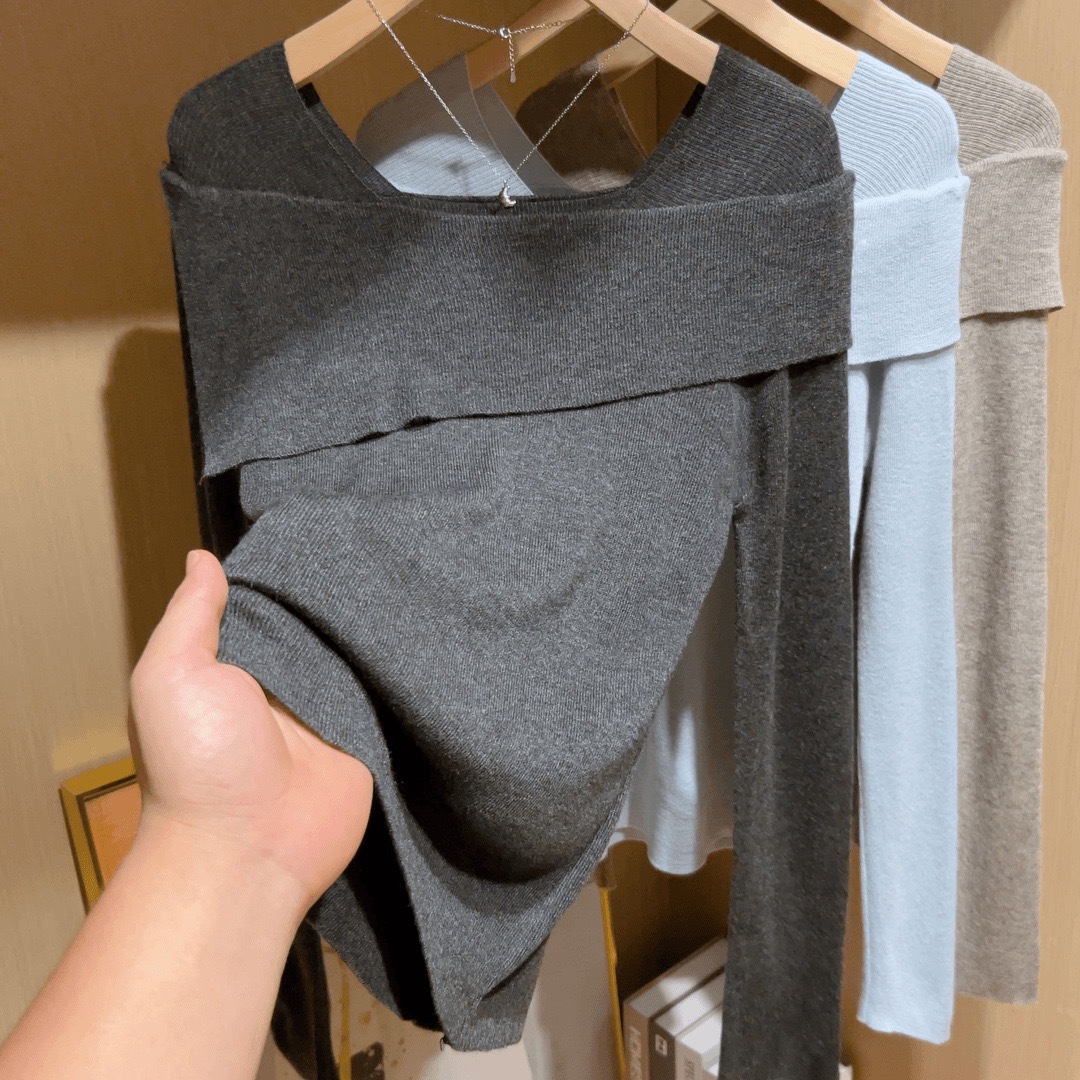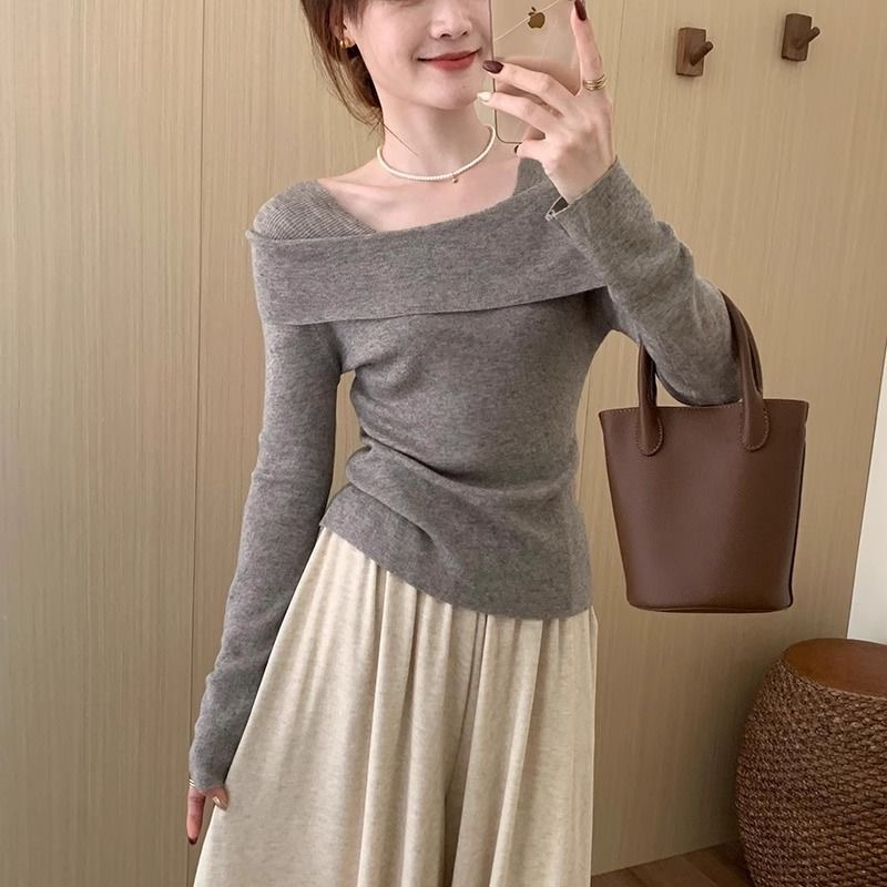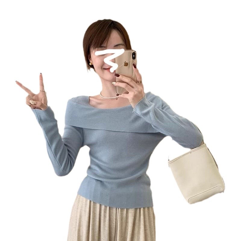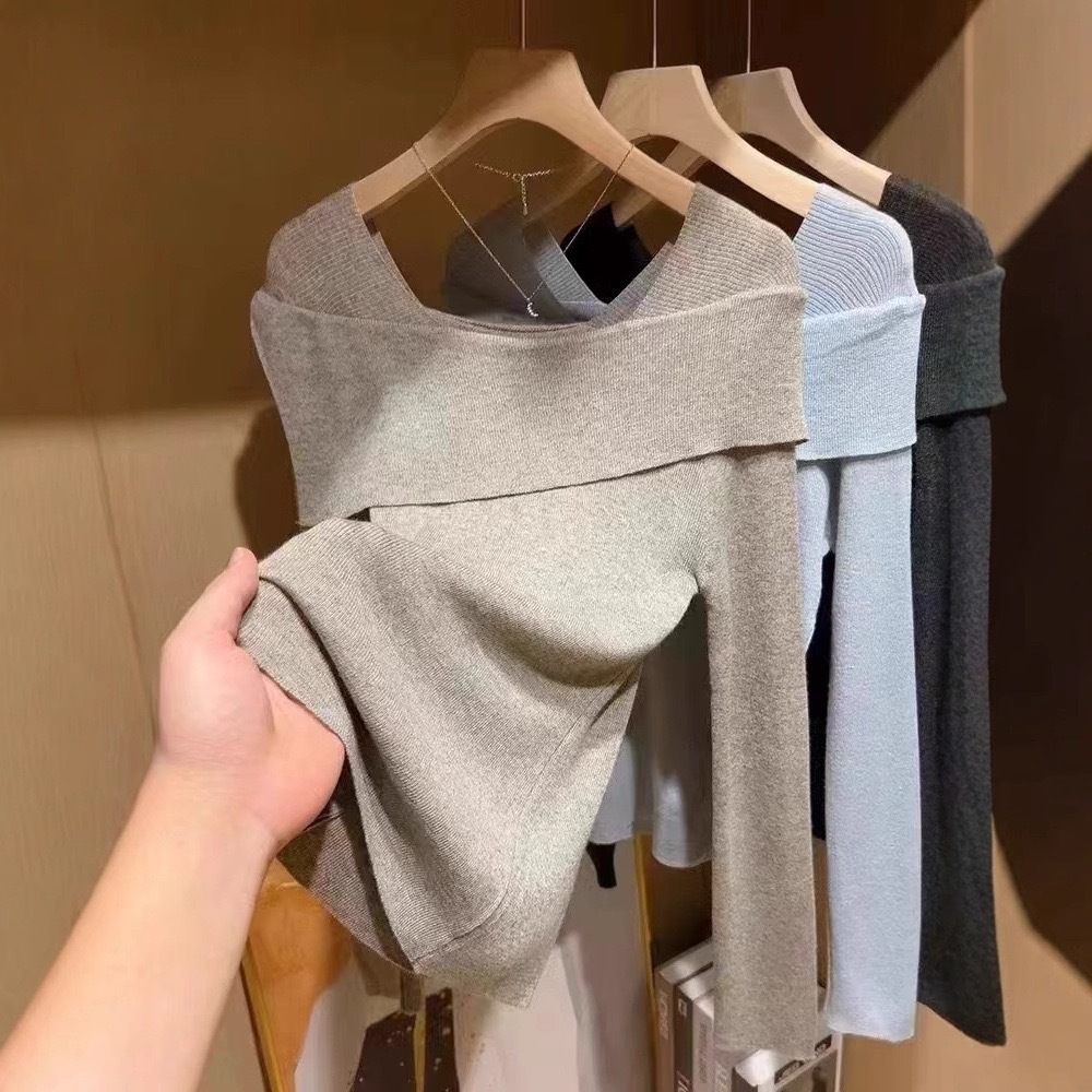 Главная страница > Синий свитер на одно плечо Pure Desire, женский осенне-зимний высококачественный тонкий свитер с длинными рукавами и нижней рубашкой, топ