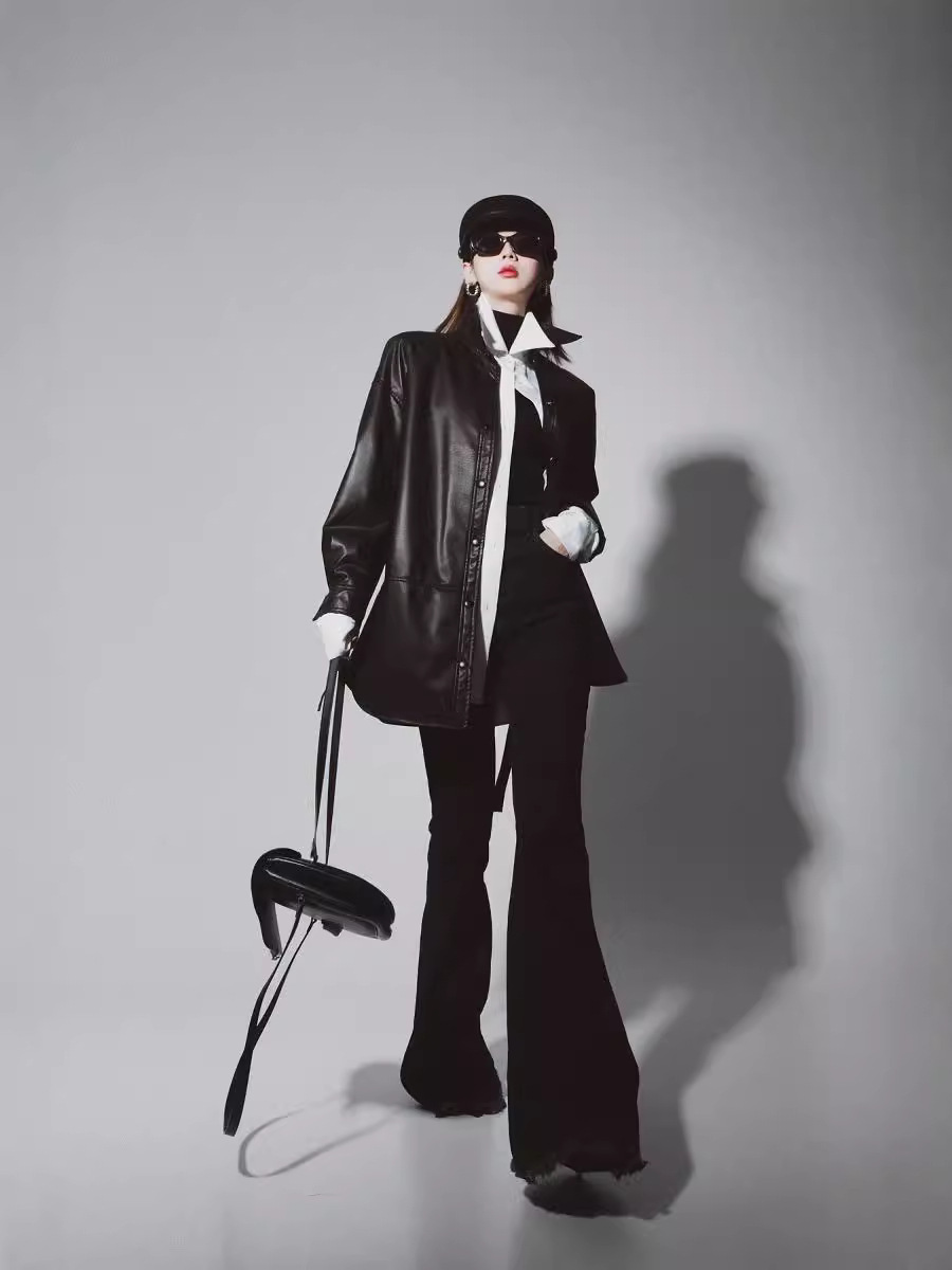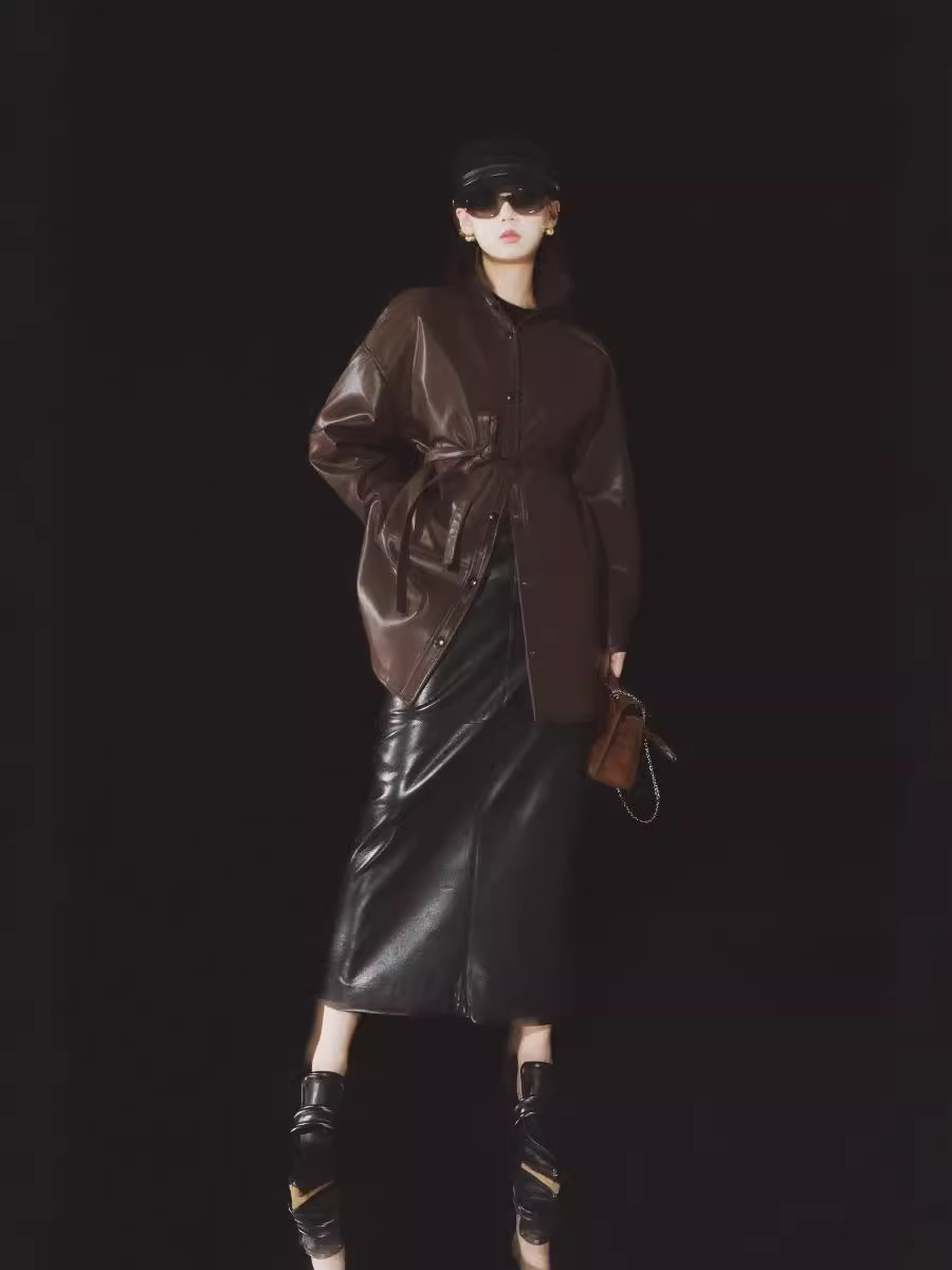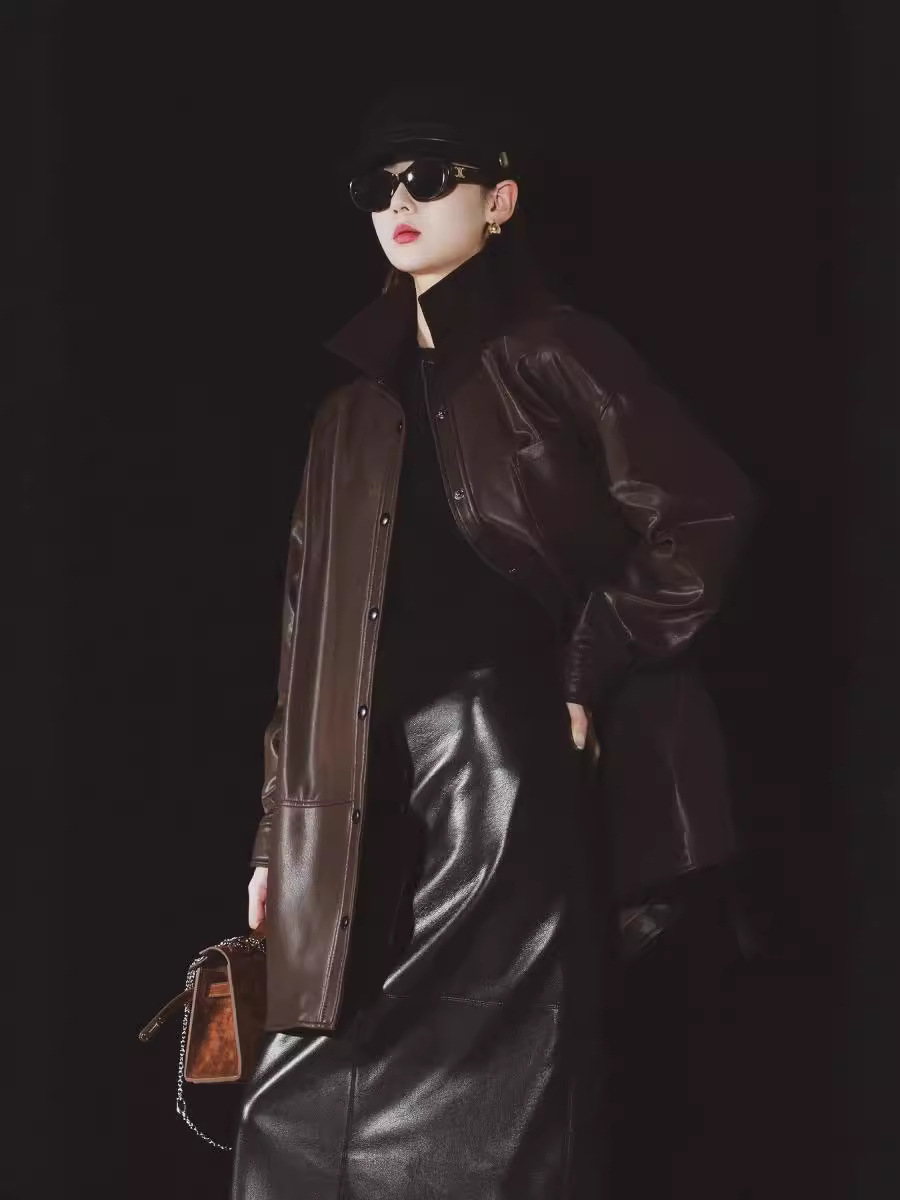 Главная страница > Кожаная куртка из овечьей кожи на шнуровке для женщин, укороченная кожаная куртка, осенний стиль, легкая роскошь, модная и универсальная