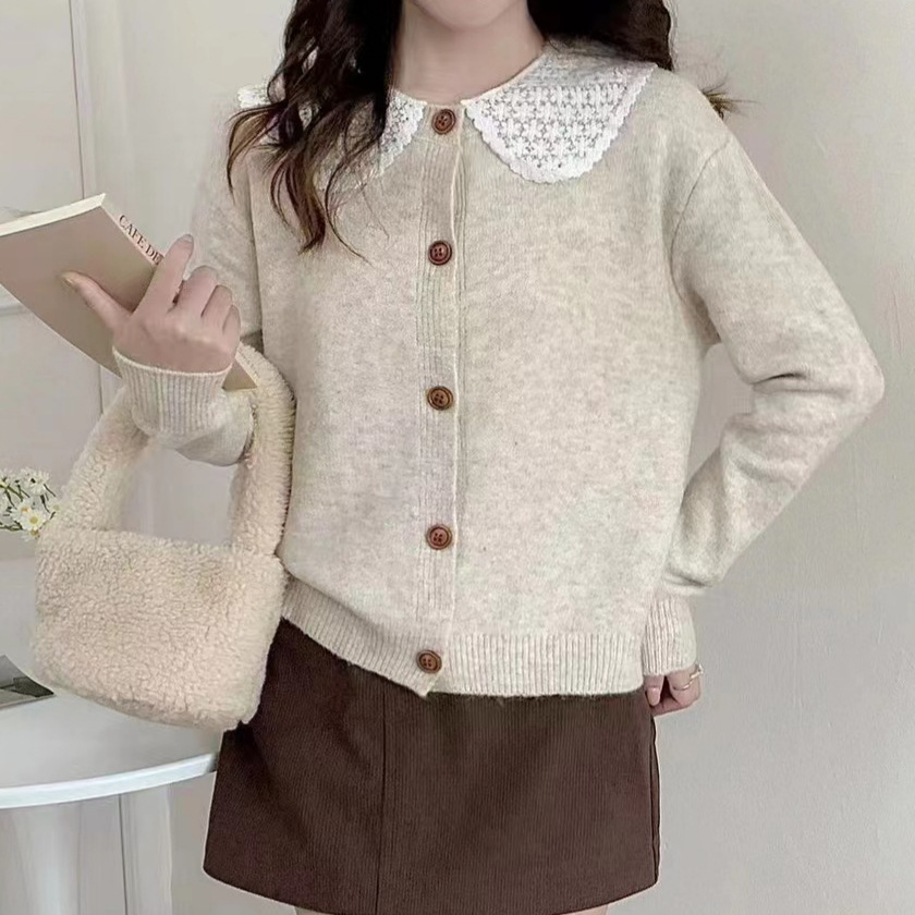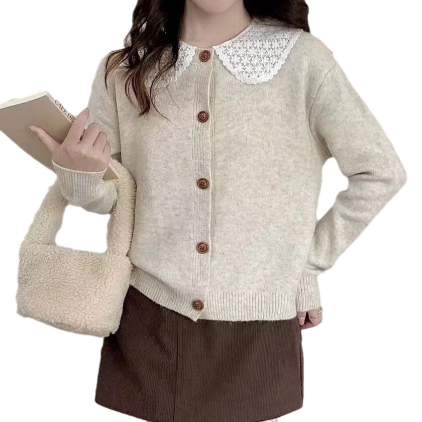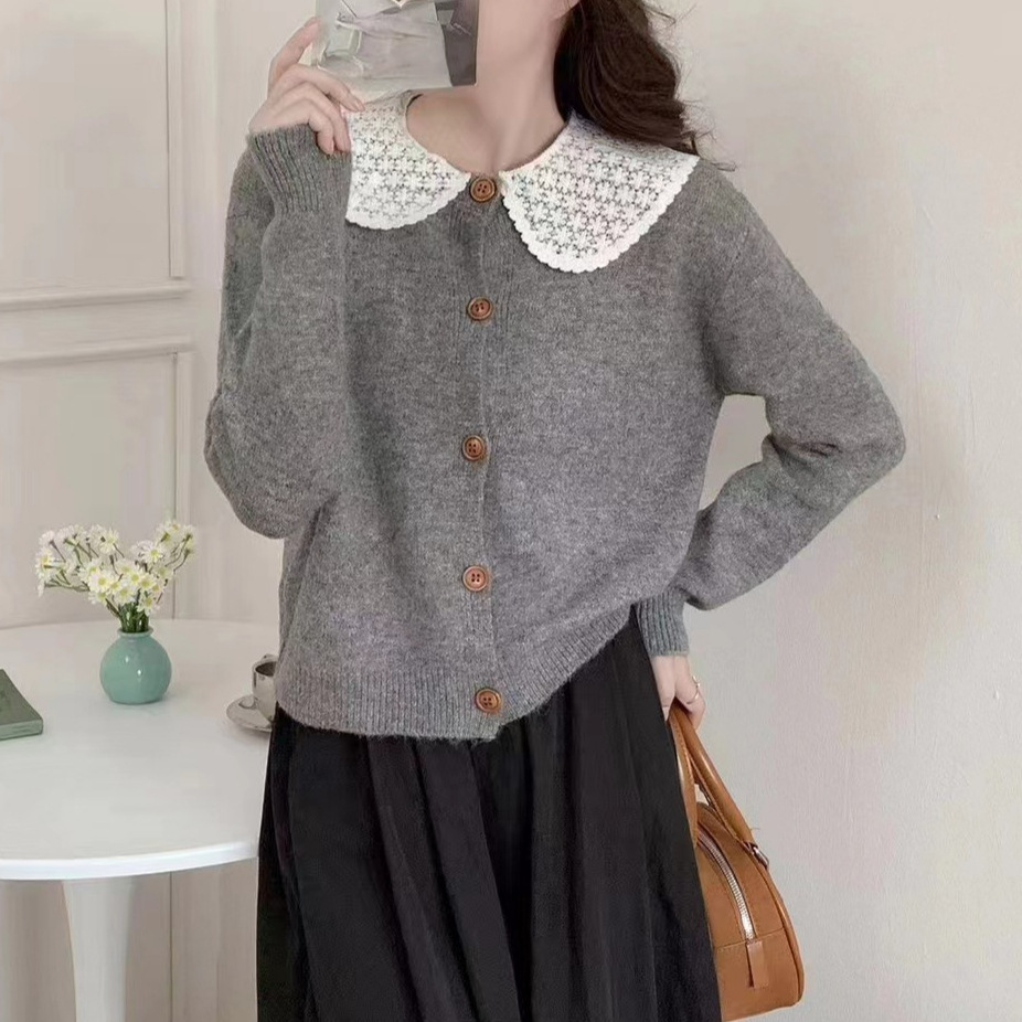 Сладкий стиль пиджак с кукольным воротником свитер кардиган женский 24 года осень и зима ретро мягкий клейкий свободный свитер топ