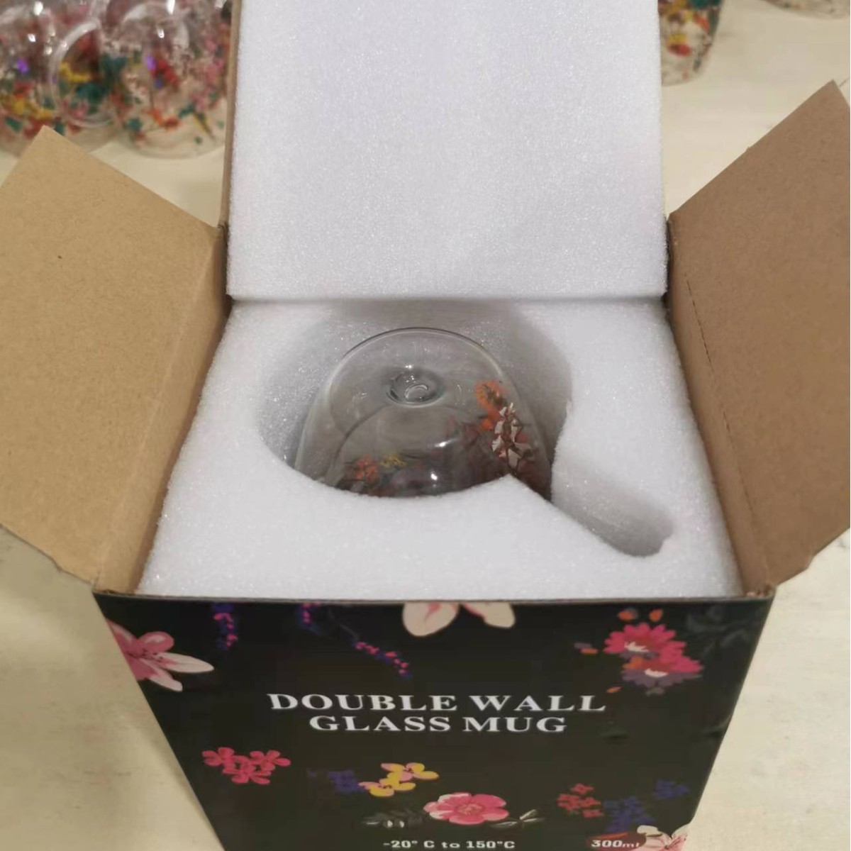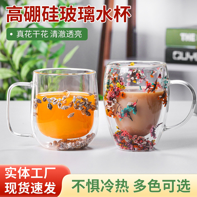 Главная страница > Двухслойная стеклянная чашка с настоящими цветами и сухими цветами, высококачественная сувенирная стеклянная чашка, чашка из боросиликатного стекла, кофейная чашка с лепестками