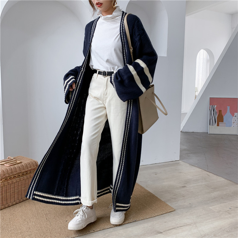 Главная страница > [Домашняя фабрика] Длинный толстый свитер выше колена в ленивом стиле, свободный большой свитер, женский толстый вязаный кардиган