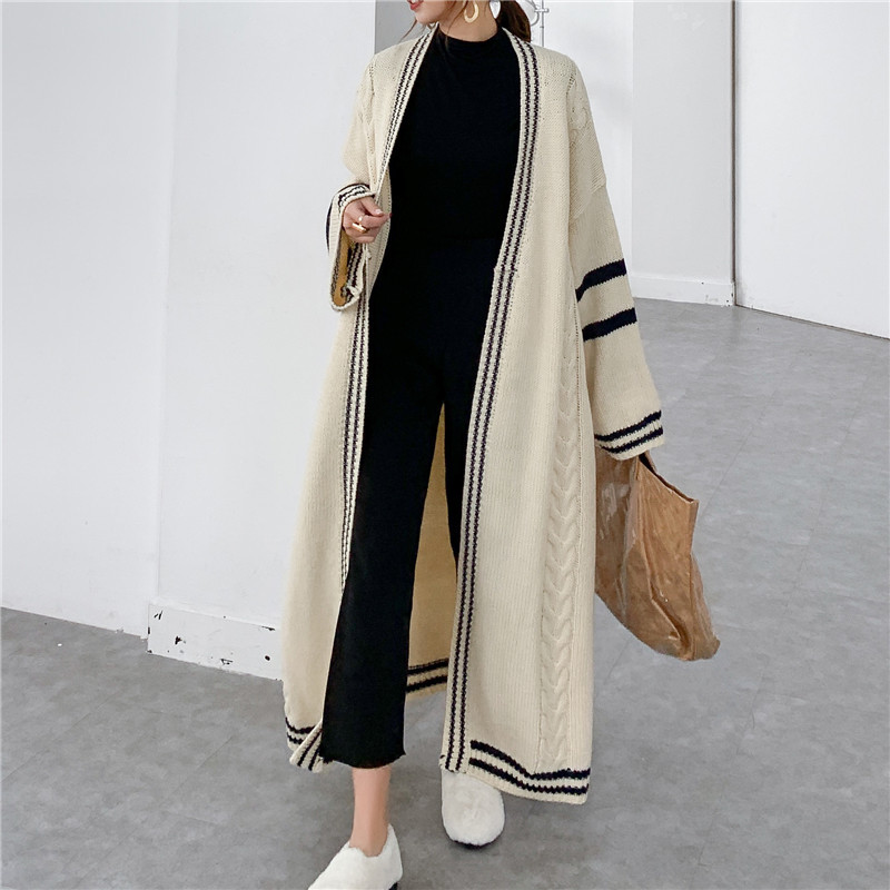 [Домашняя фабрика] Длинный толстый свитер выше колена в ленивом стиле, свободный большой свитер, женский толстый вязаный кардиган