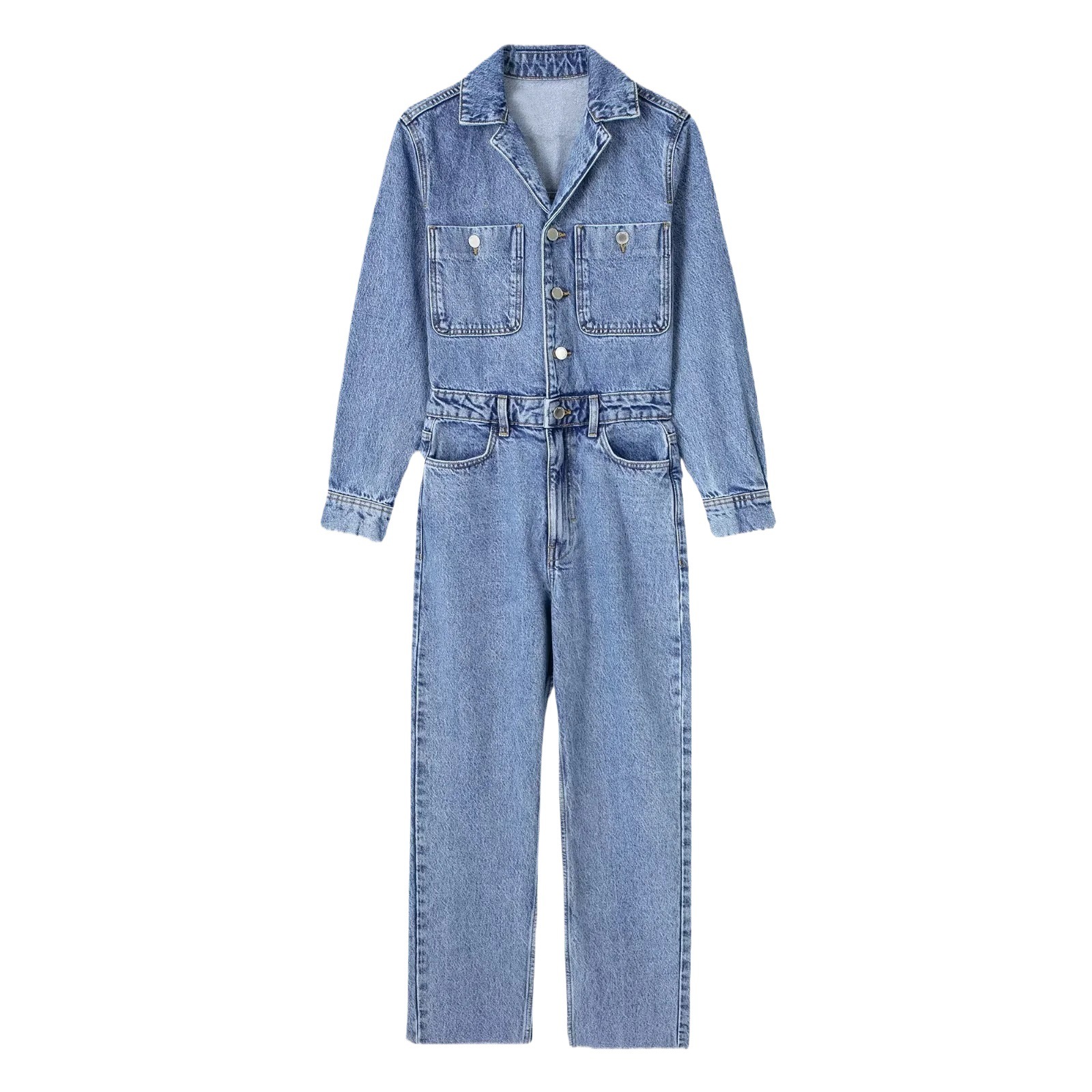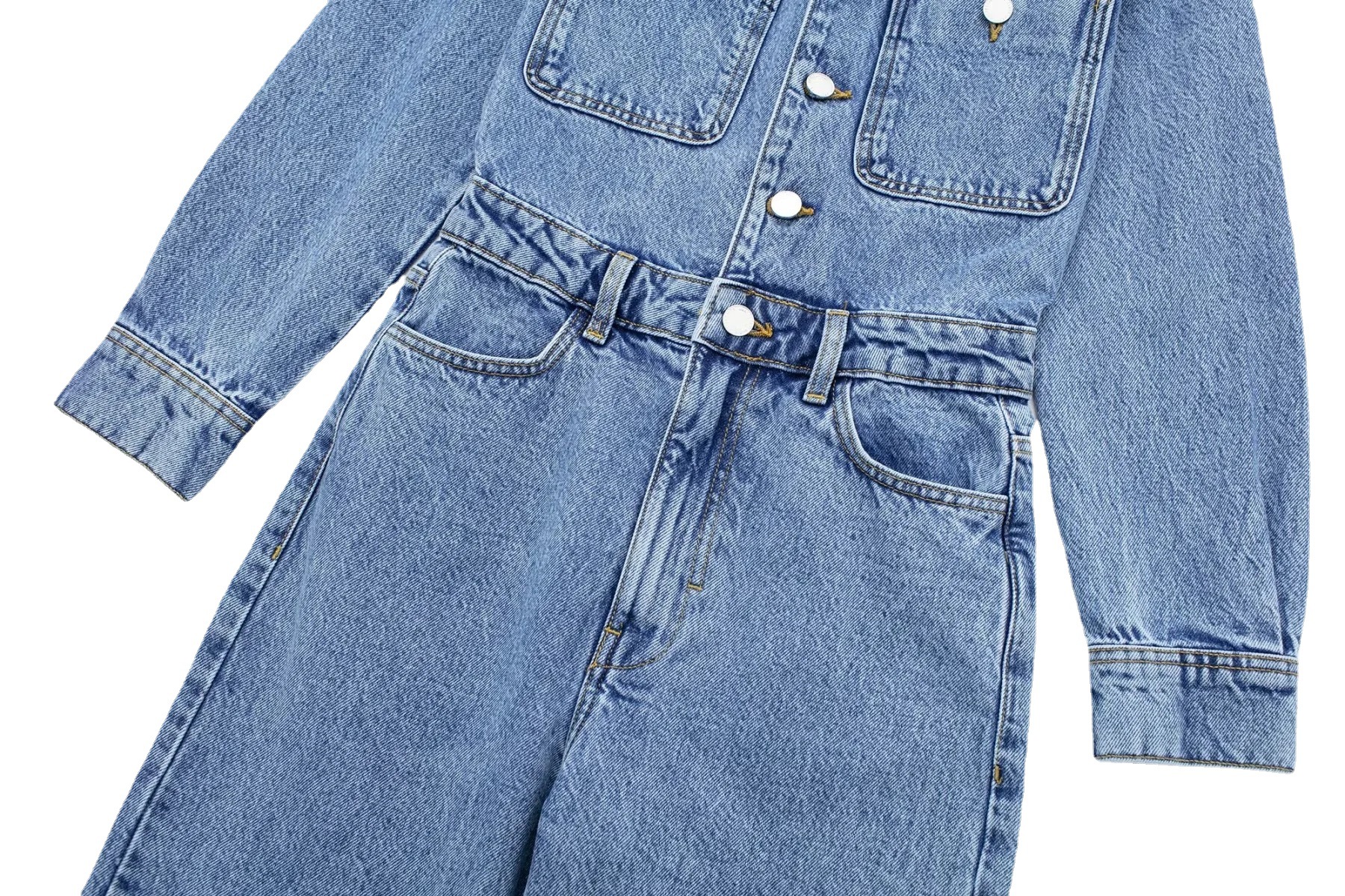 Главная страница > Джинсовый комбинезон женский прямого кроя с отложным воротником, декоративными карманами и поясом, весна-осень 2023, европейский и американский стиль