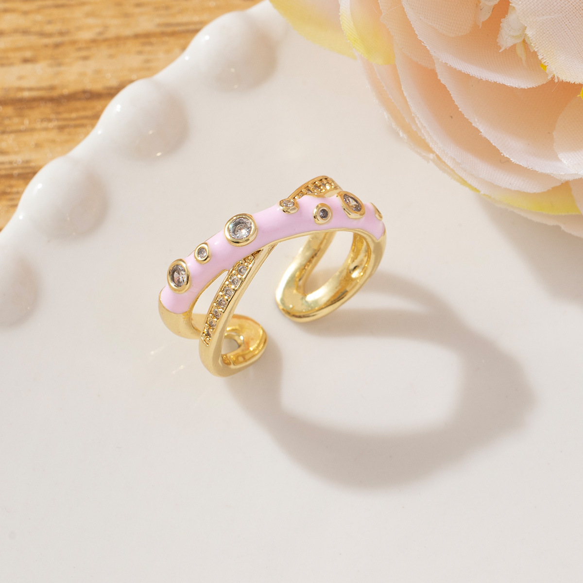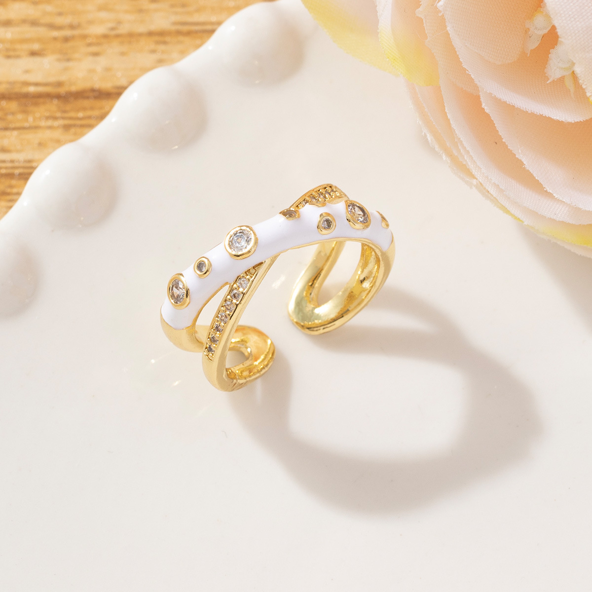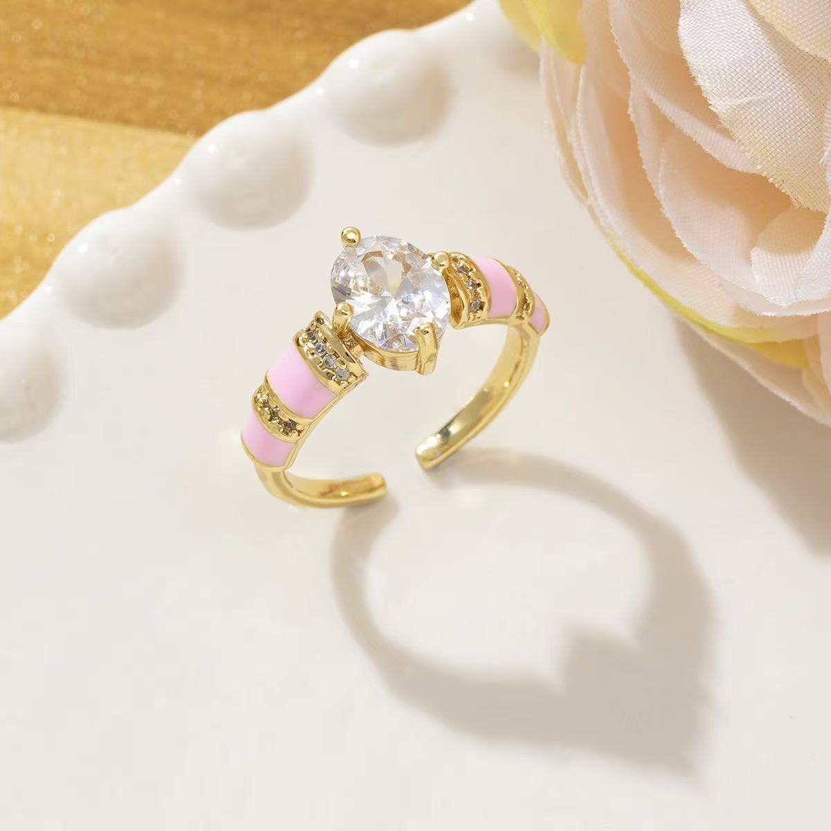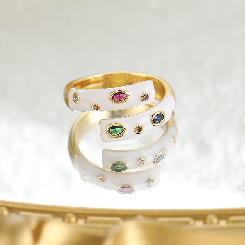 Ins новый стиль легкий экстравагантный ветер капает эмалевое кольцо для женщин элегантный ретро мода высокого уровня чувство циркон открыть кольцо для еды