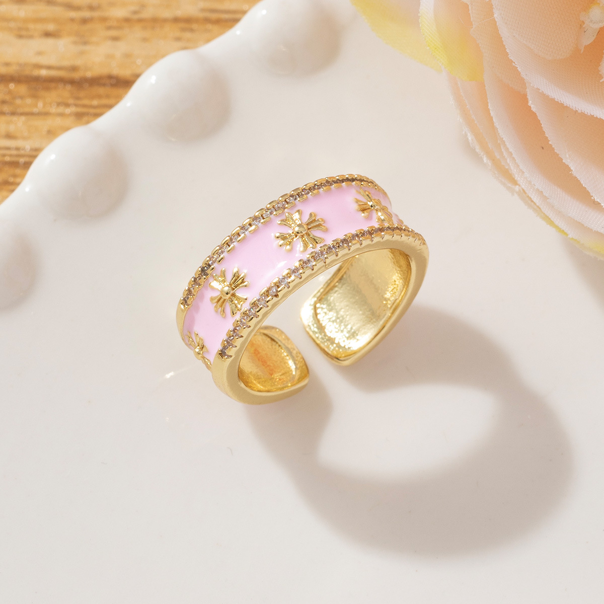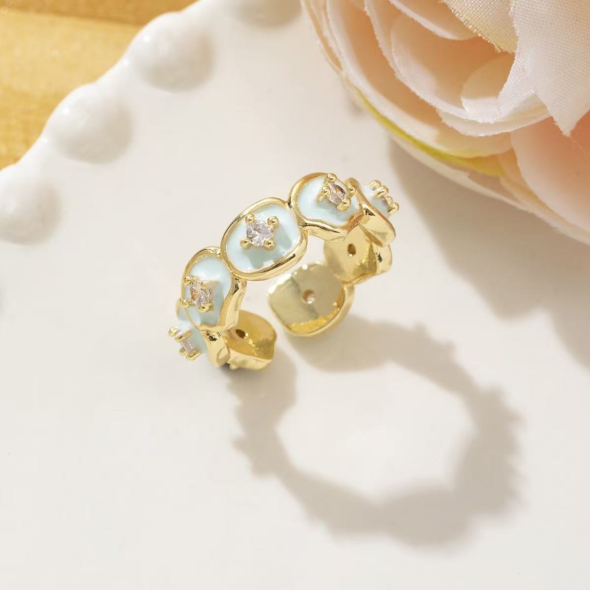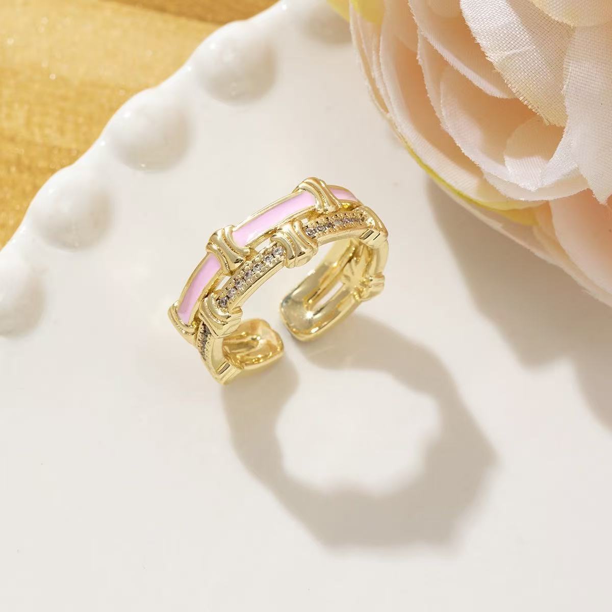 Ins новый стиль легкий экстравагантный ветер капает эмалевое кольцо для женщин элегантный ретро мода высокого уровня чувство циркон открыть кольцо для еды
