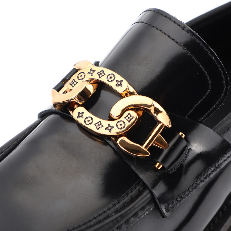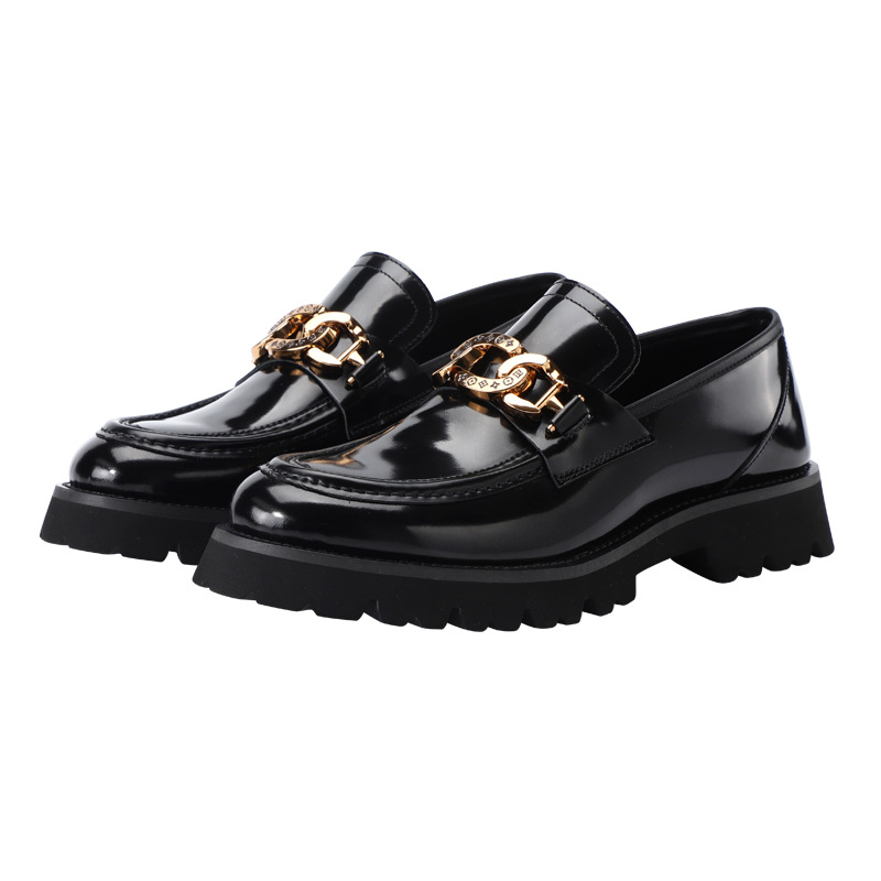 Главная страница > 2023 Осенне-зимняя мужская кожаная обувь, одиночные туфли с металлической пряжкой, мокасины на толстой подошве, Мужская Маленькая кожаная обувь в британском стиле, оптовая продажа