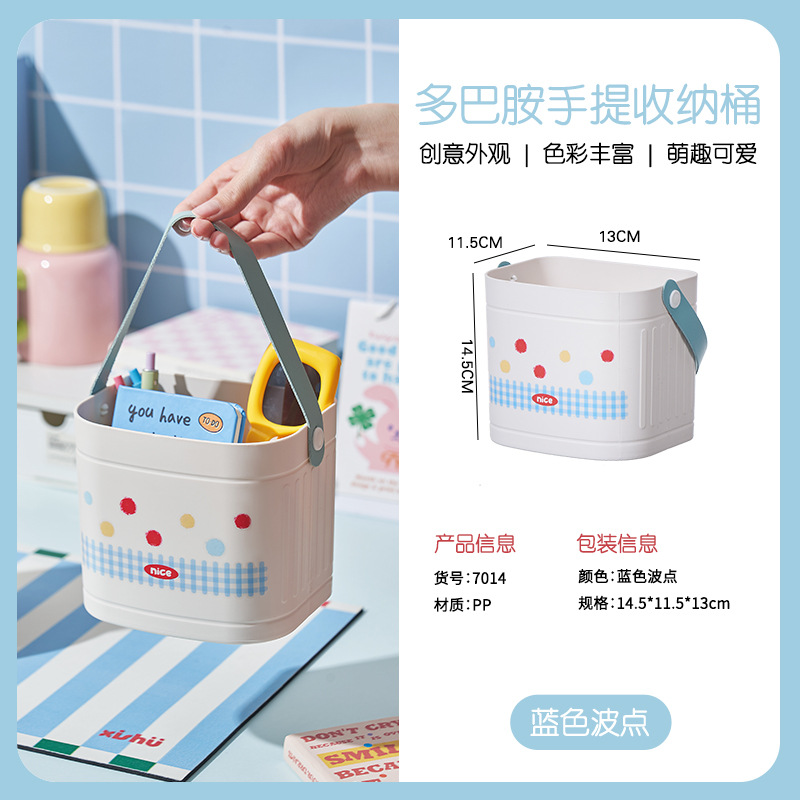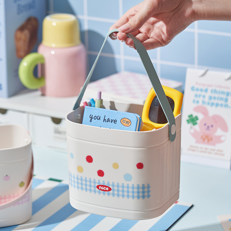 Портативное ведро для хранения, офисный настольный ящик для хранения мелочей, бытовой кремовый стиль, кисточка для макияжа, стеллаж для хранения с дистанционным управлением