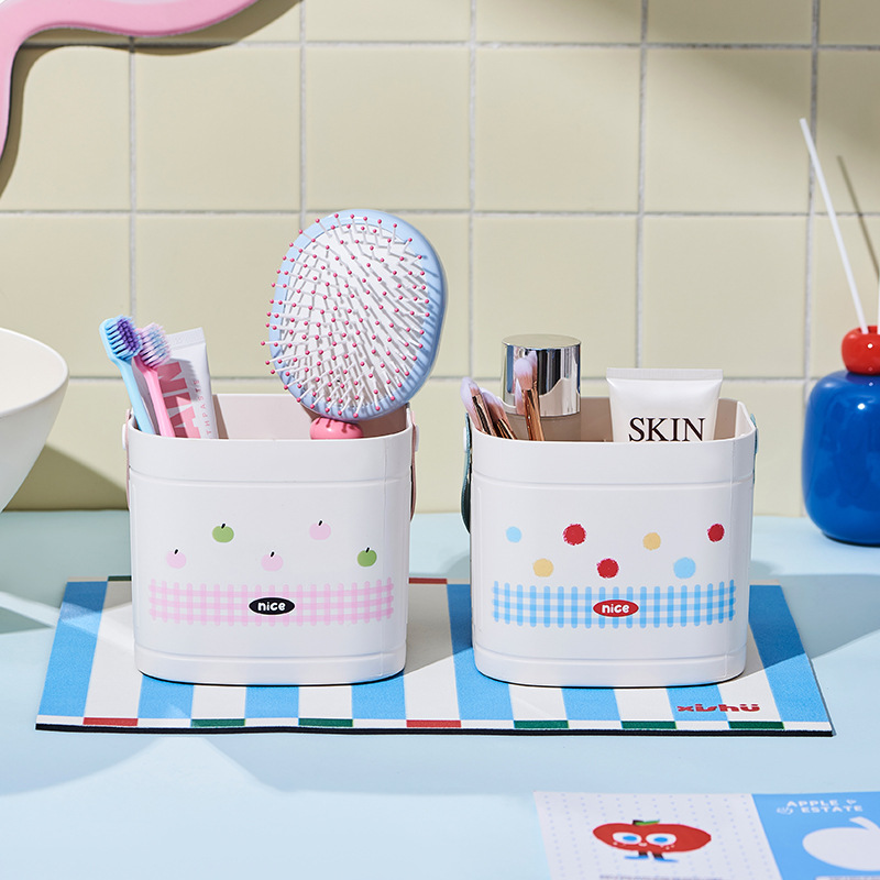 Главная страница > Портативное ведро для хранения, офисный настольный ящик для хранения мелочей, бытовой кремовый стиль, кисточка для макияжа, стеллаж для хранения с дистанционным управлением