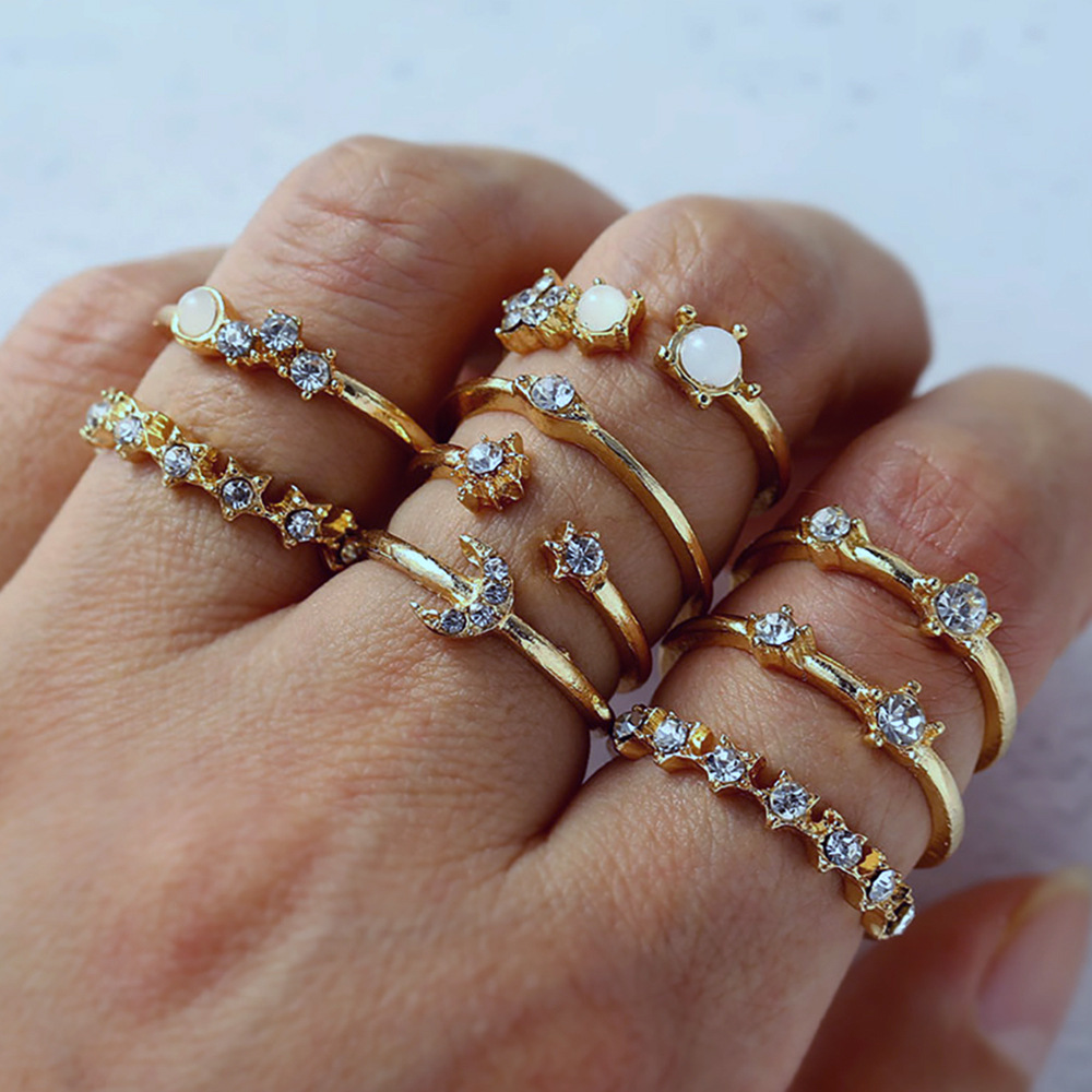 Главная страница > Трансграничное кольцо со звездой и Луной Diamond Love leaves, кольцо из 10 предметов, женское легкое роскошное кольцо из высококачественного сплава
