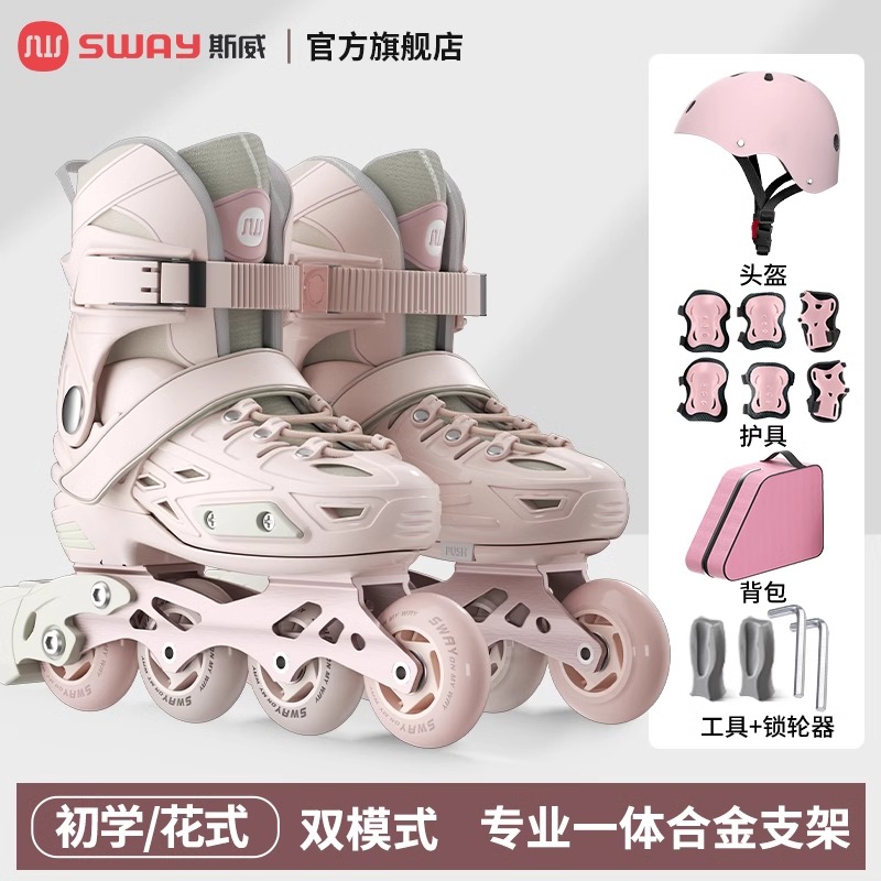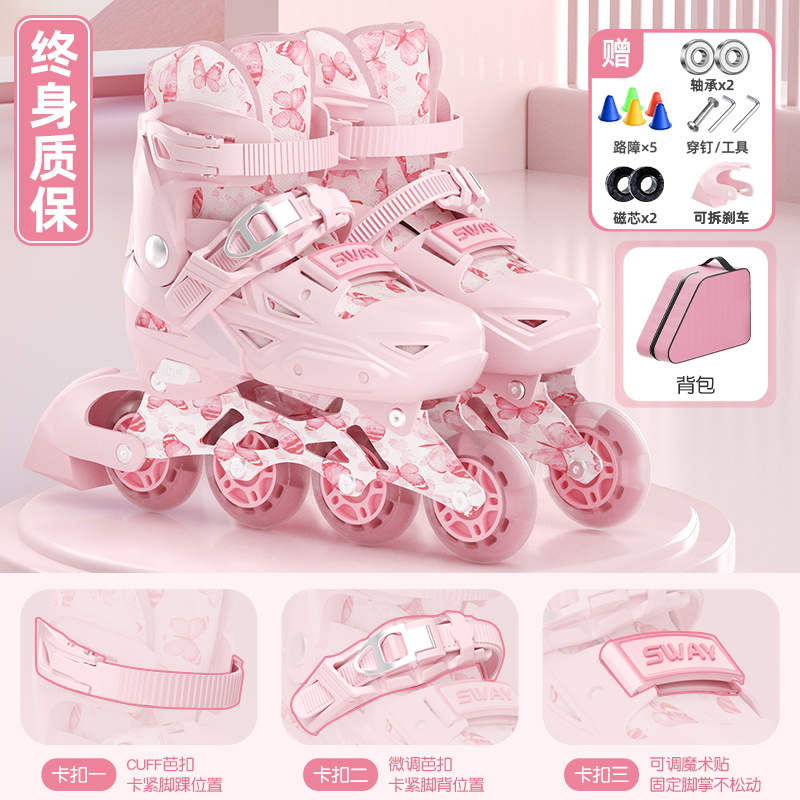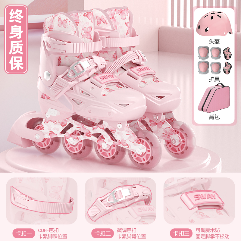 Новинка 2025 года, розовый [нет необходимости завязывать шнурки/тройной замок для ног] профессиональная защита шлема + защита бедер + рюкзак + подарочный пакет