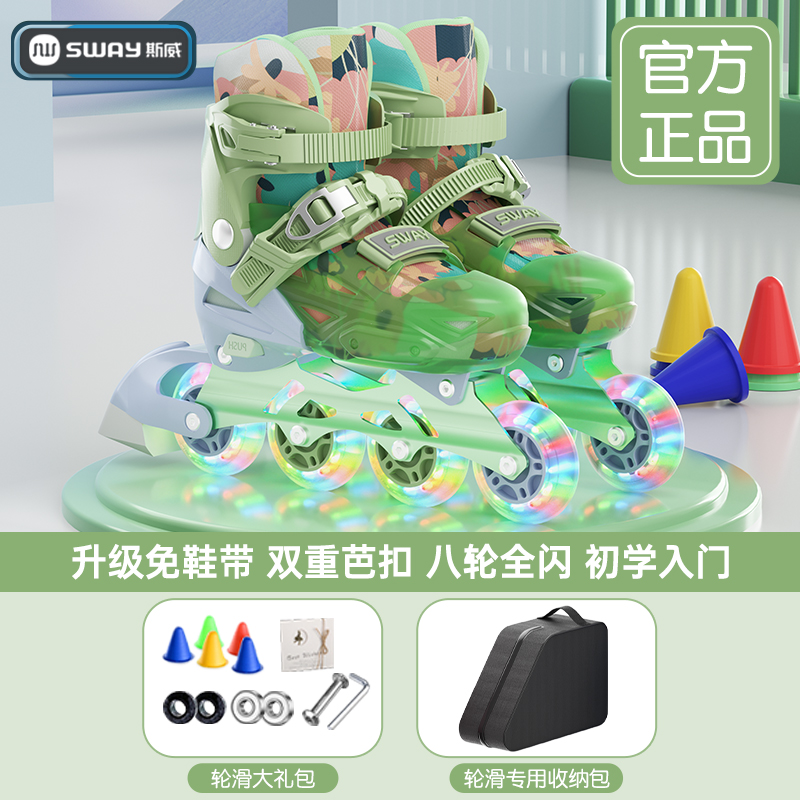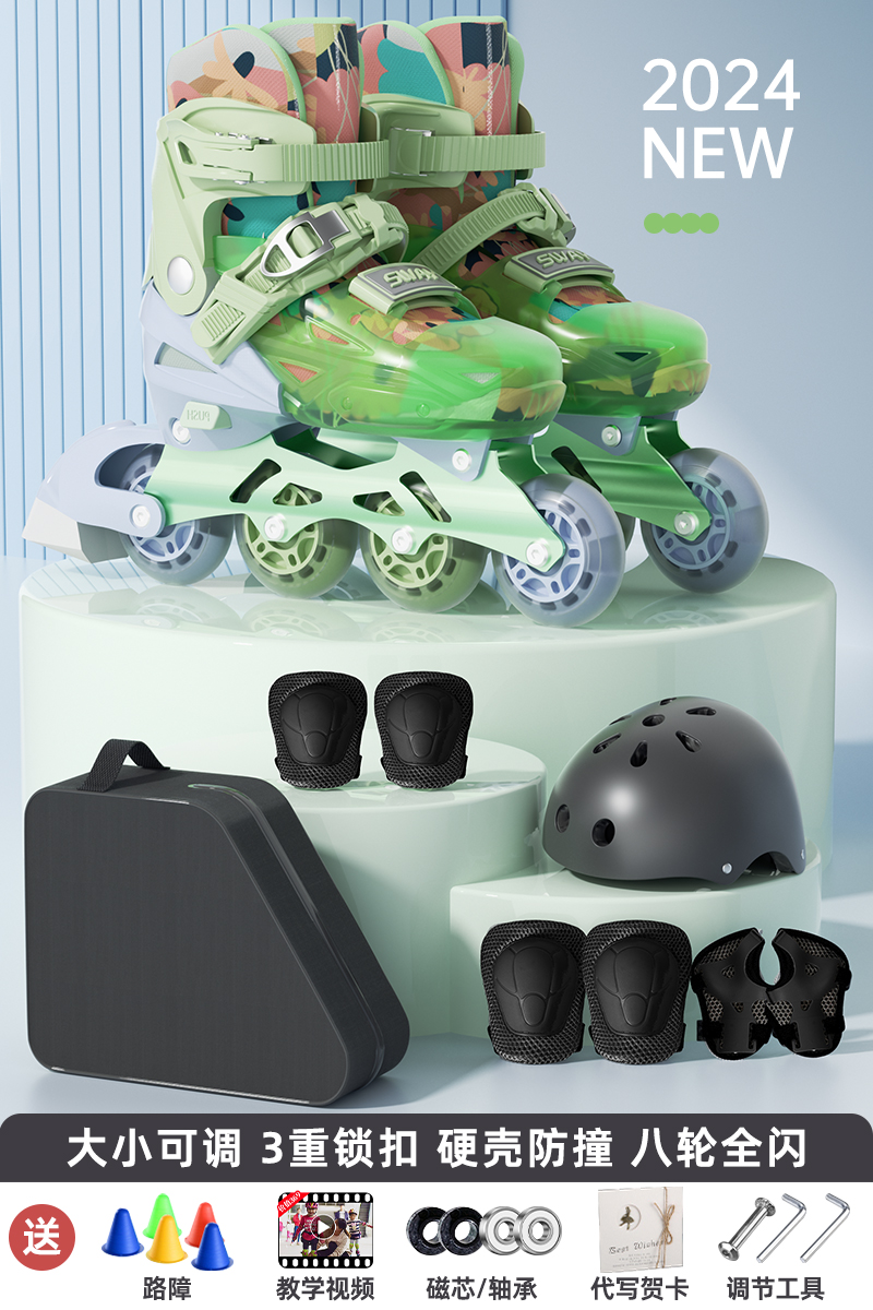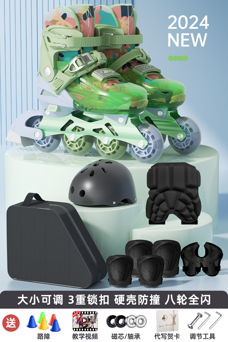 Новинка 2025 года, зеленый [без шнурков/тройной замок для ног], профессиональная защита шлема + защита бедер + рюкзак + подарочный пакет