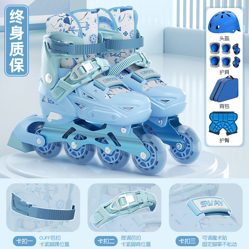 2025 новый прозрачный синий [нет необходимости завязывать шнурки/тройной замок для ног] профессиональная защита шлема + защита бедер + рюкзак + подарочный пакет