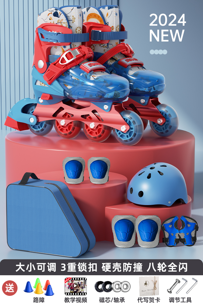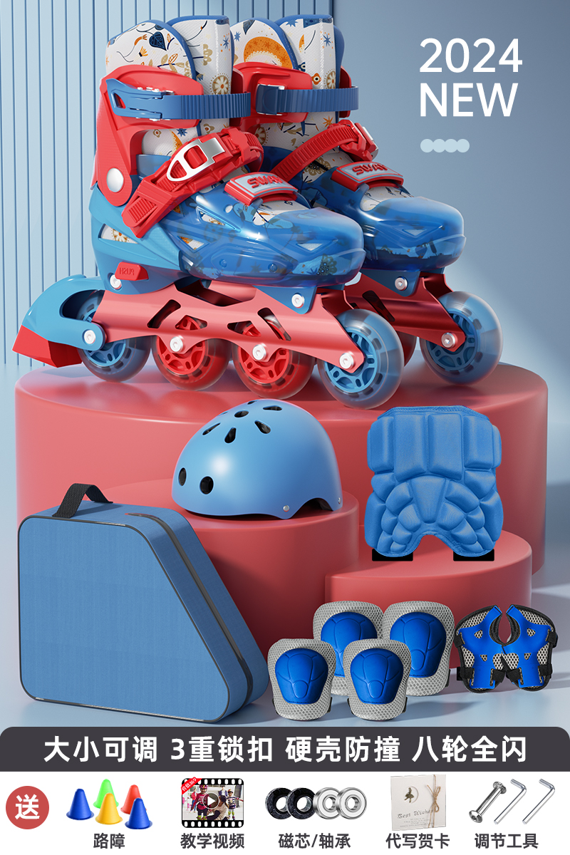 Новинка 2025 года, синий и красный [без шнурков/тройной замок для ног] профессиональная защита шлема + защита бедер + рюкзак + подарочный пакет