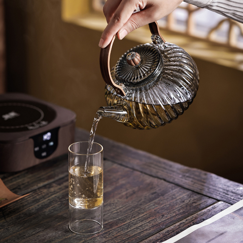 Главная страница > Стеклянный чайник Подъемный горшок с деревянной ручкой, устойчивый к высоким температурам, кипящий чайник, бытовой чайник для разделения воды, цветочный чайник