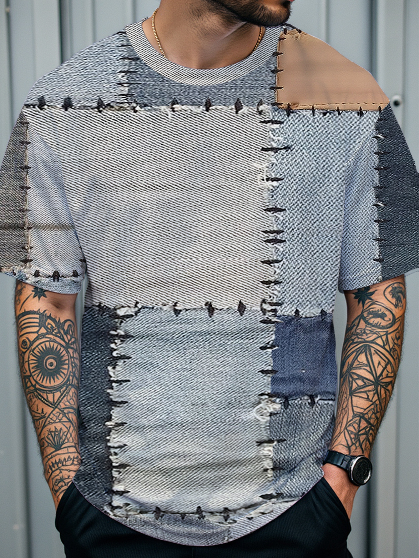 Temu поставляет трансграничные экспортные независимые станции, европейские и американские мужские футболки, повседневные футболки с круглым вырезом и короткими рукавами с 3D цифровой печатью.