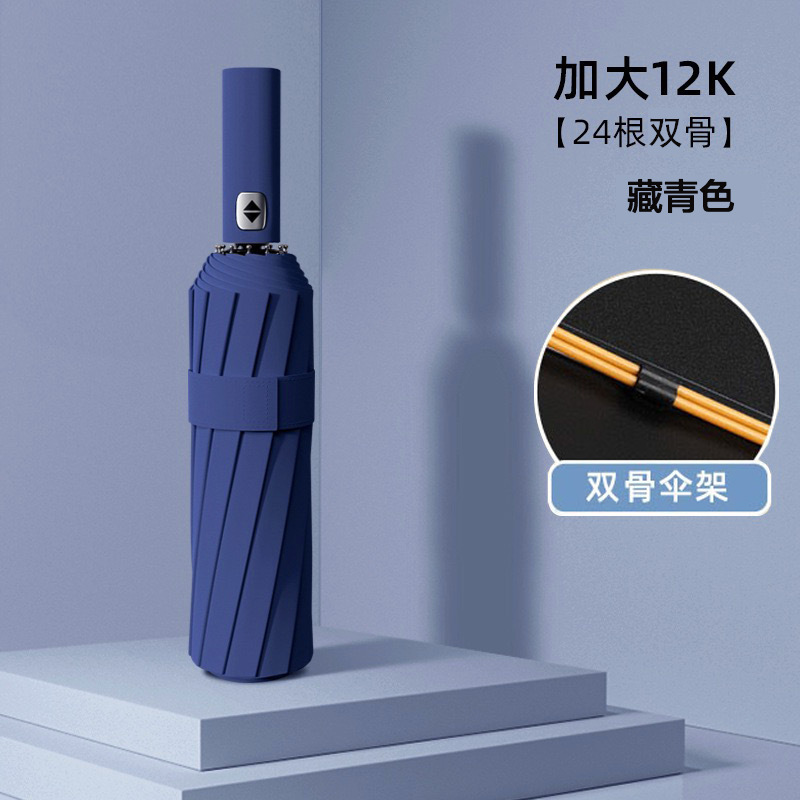 [Глубокий морской синий] Полностью автоматический 96-костный полностью затемняющий виниловый зонт под углом 110 см.