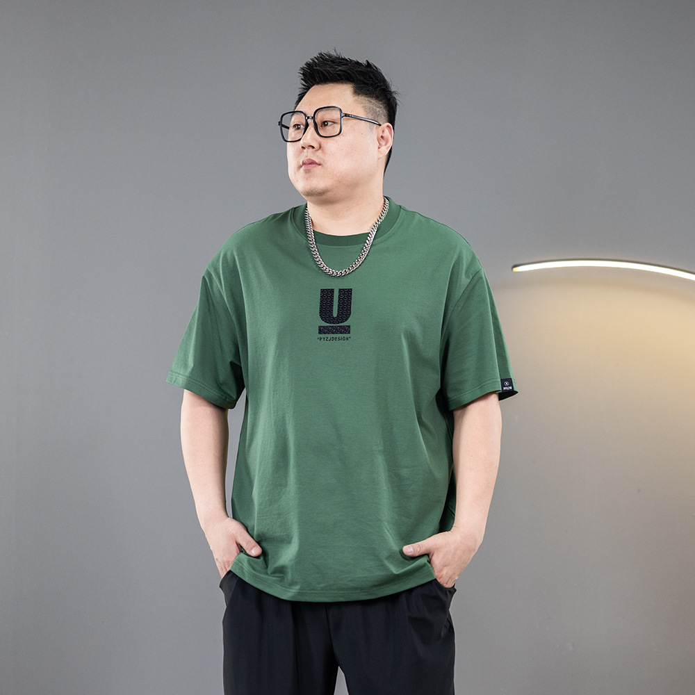 Толстый крикет большой размер с короткими рукавами мужской летний свободный большой размер футболки мужской толстый вес увеличен мужской повседневный пол рукава