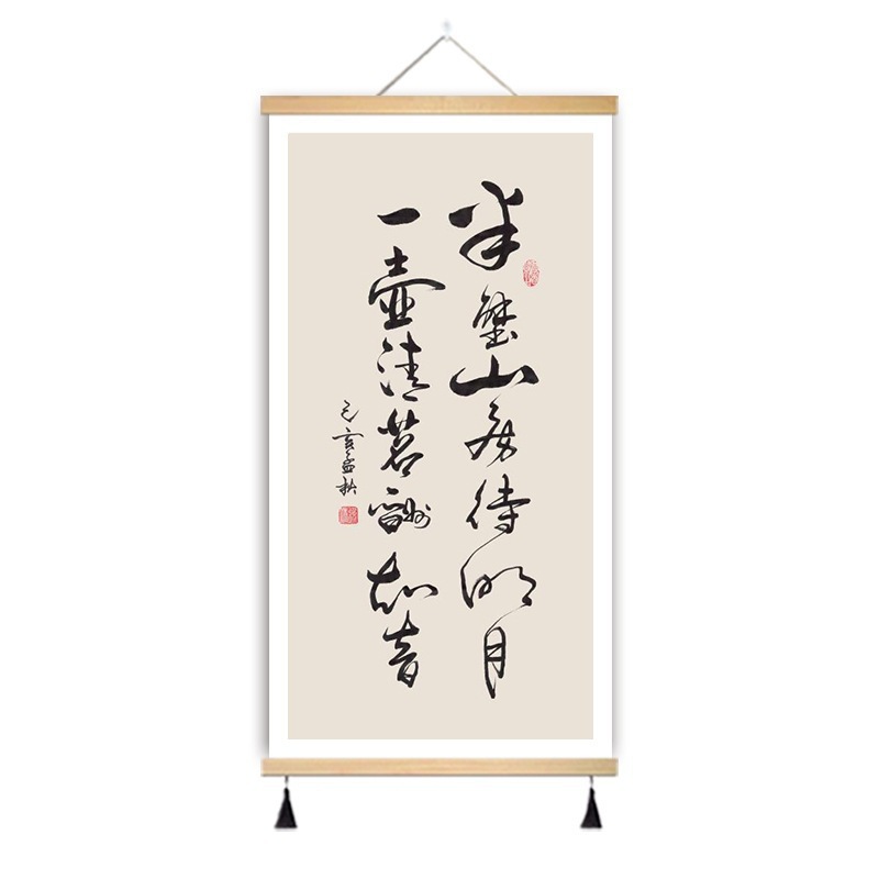 - Ширина 80*Высота 160-Свиток из цельного дерева+ХД-холст+подвесная кисточка-единичная цена, свободное подвешивание