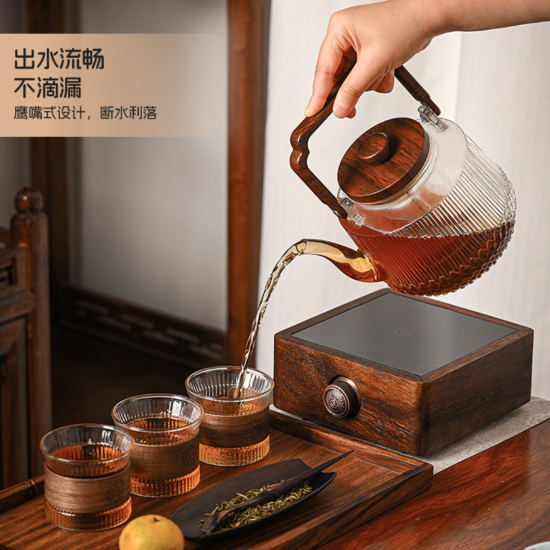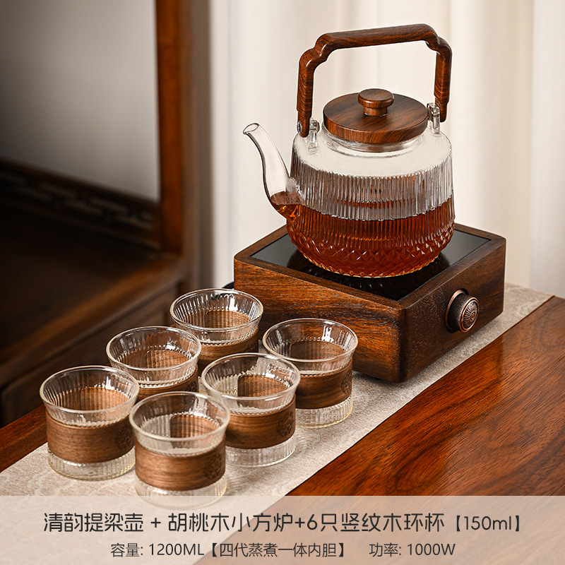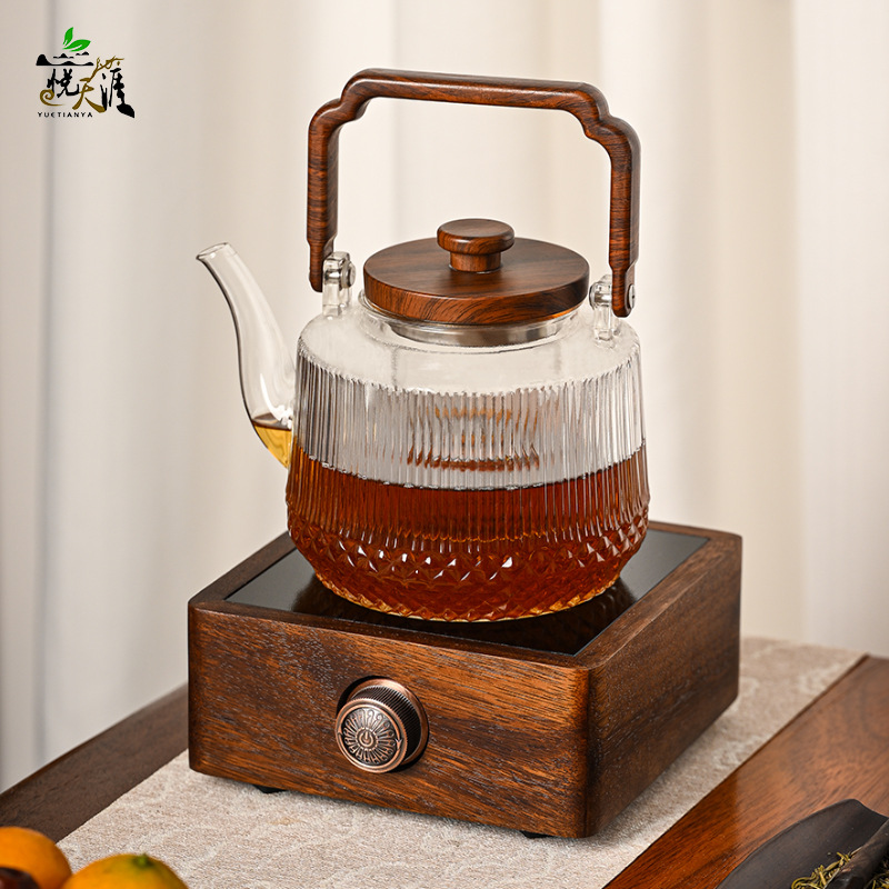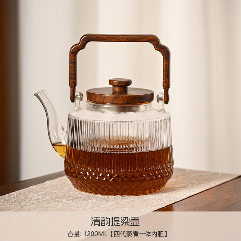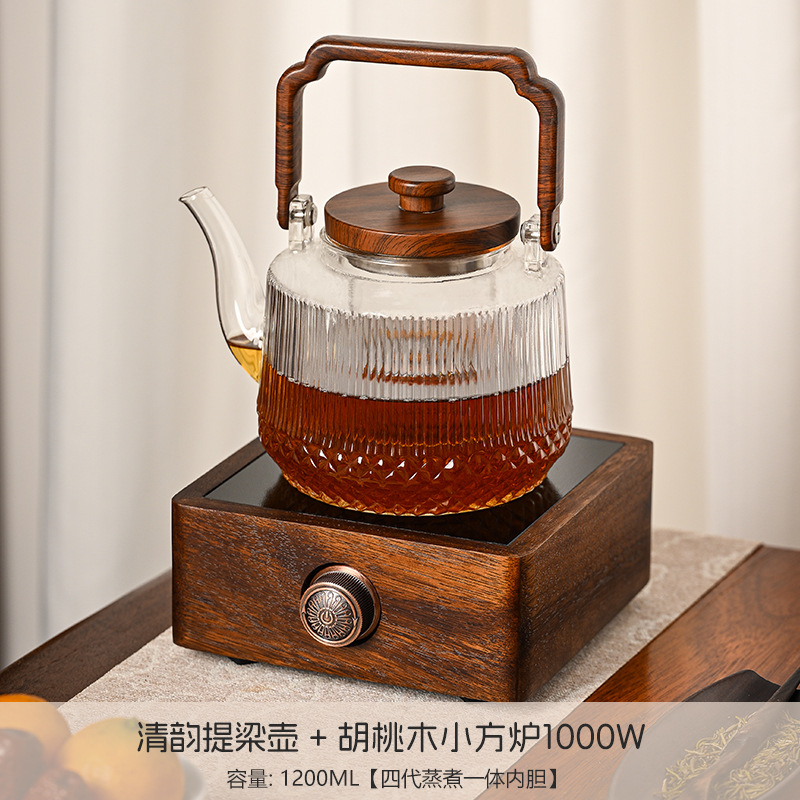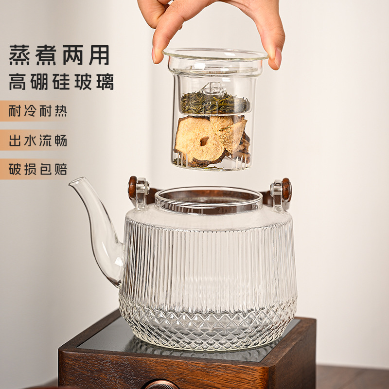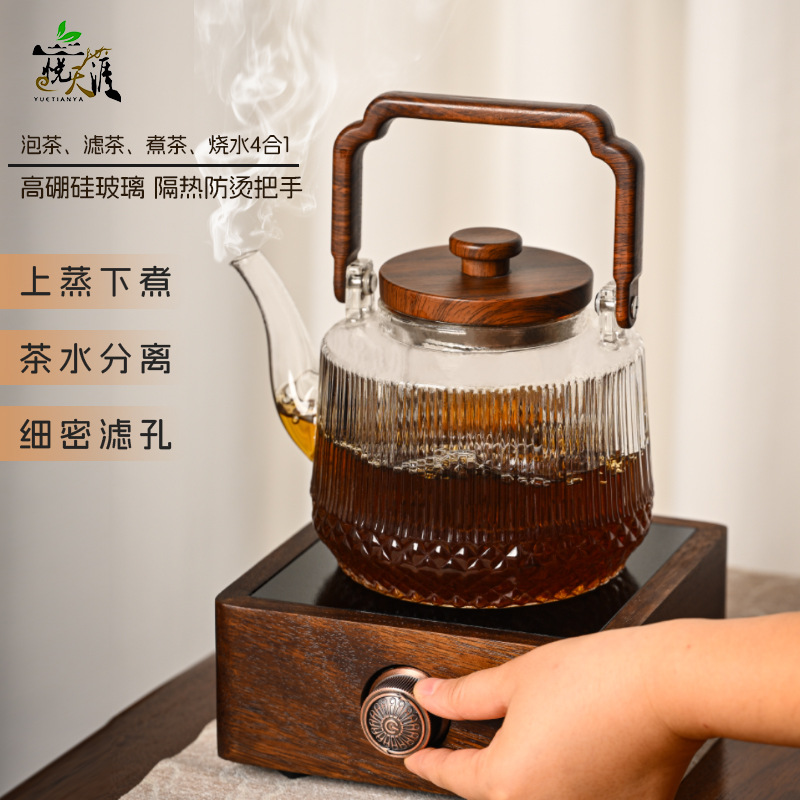 Главная страница > Новый большой бытовой чайник, стеклянный заварочный чайник, электрическая керамическая плита, интегрированные функции приготовления на пару и варки, чайник с ручкой для заваривания чая у плиты.