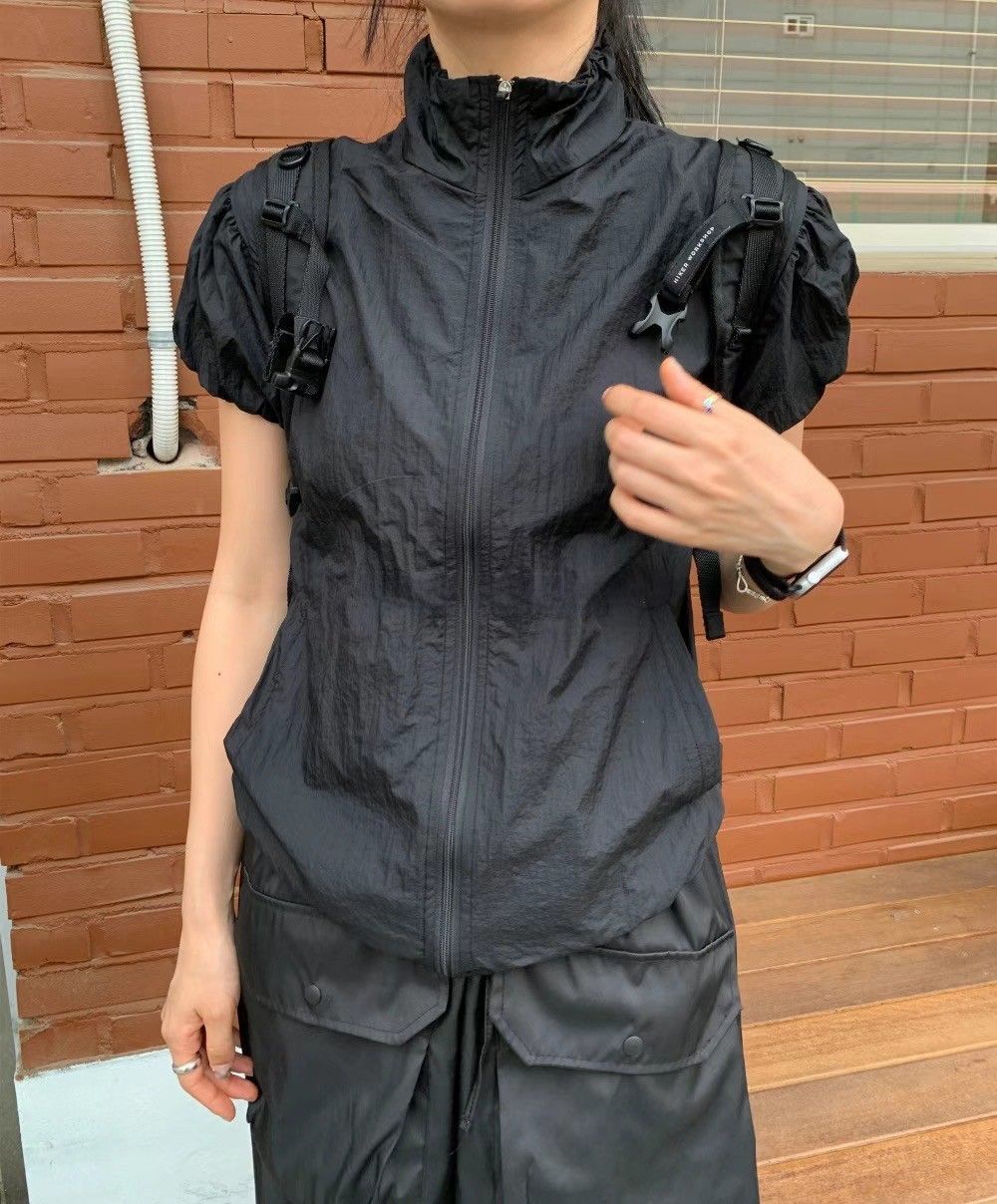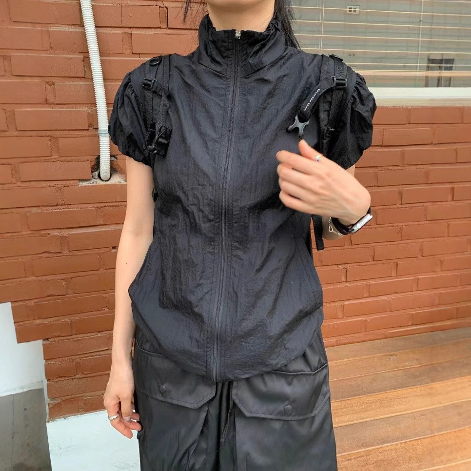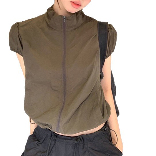 Главная страница > Американская тонкая короткая куртка с воротником-стойкой в стиле ретро, женская летняя новая повседневная свободная модная верхняя одежда на молнии с короткими рукавами