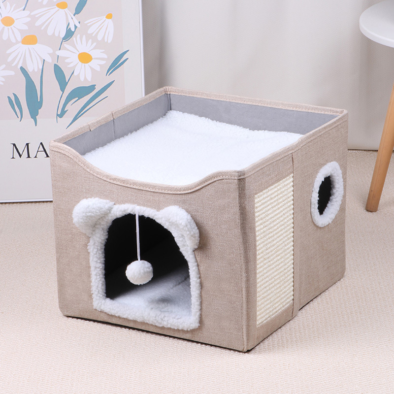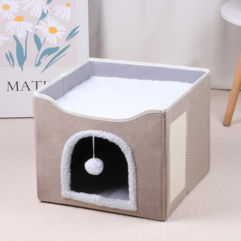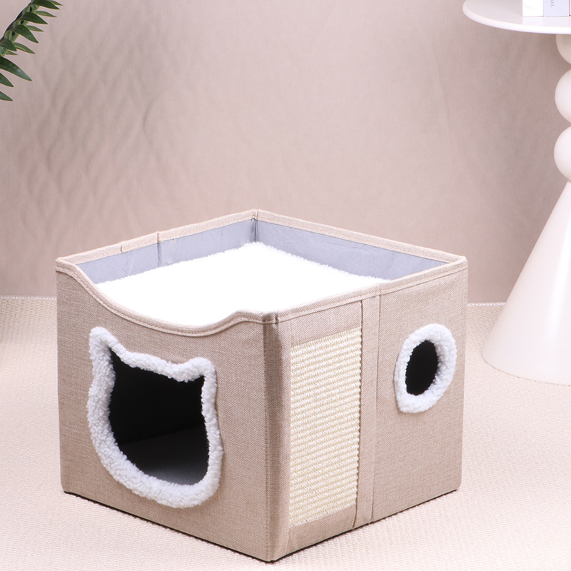 Кошачье гнездо из мешковины прямоугольное серое 41*41*32