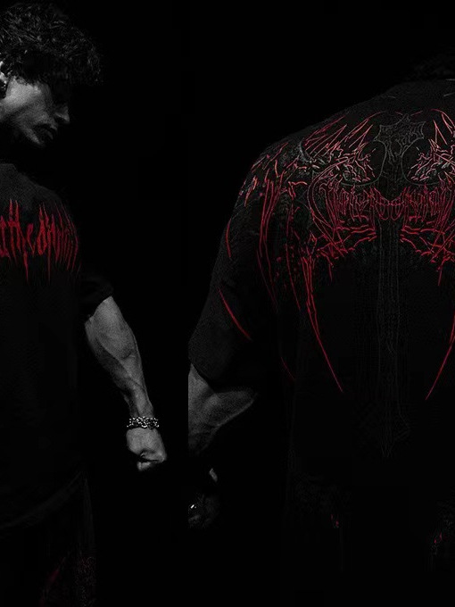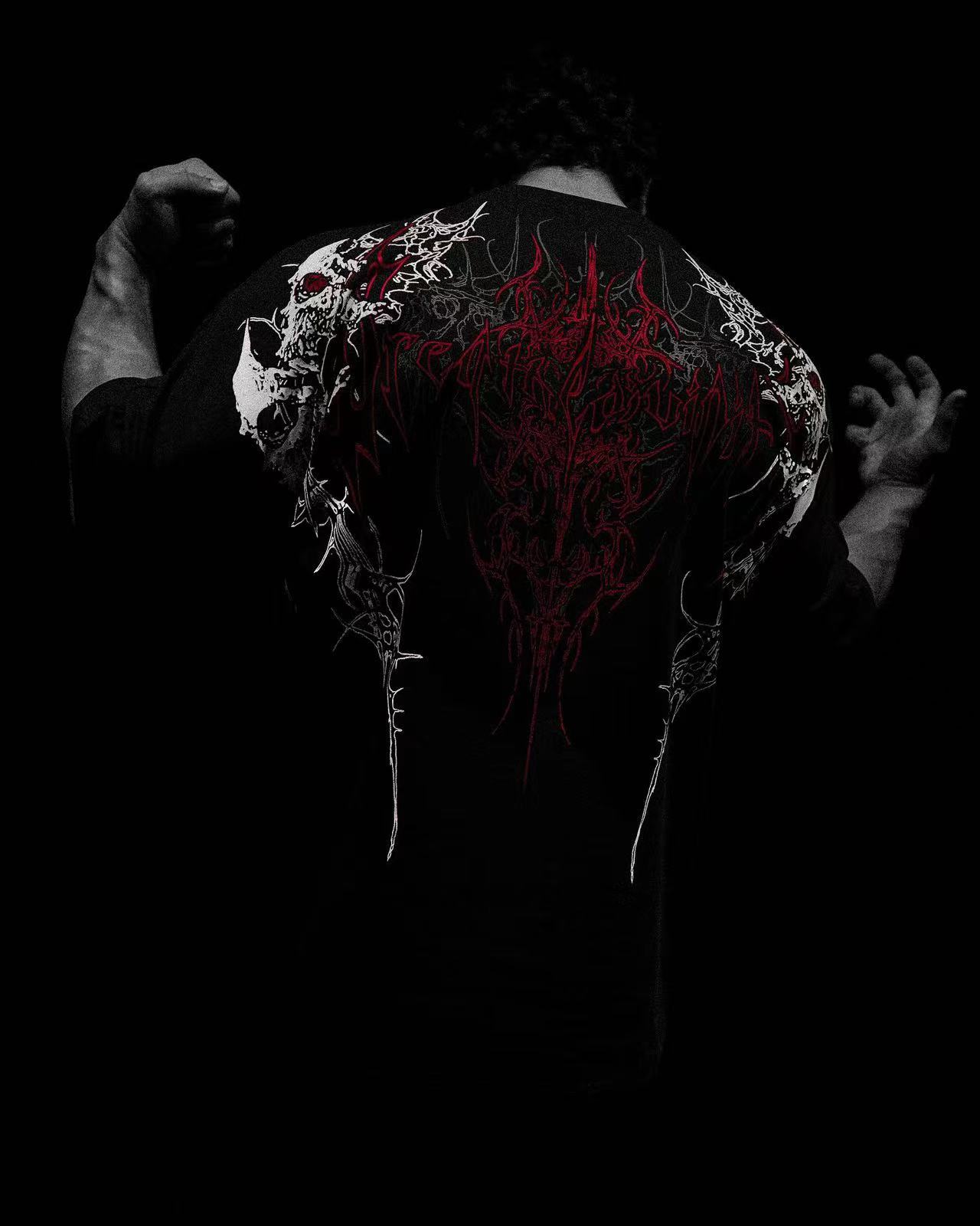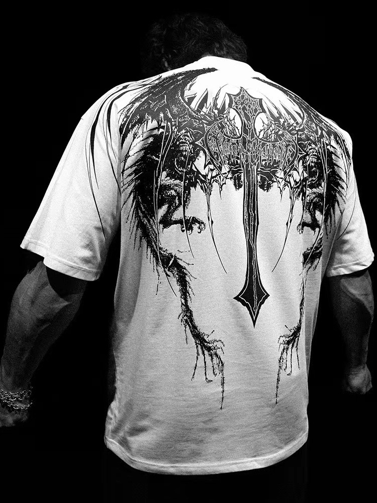 2025 трансграничный демон-крест с принтом футболка с короткими рукавами летняя дикая рубашка с короткими рукавами и круглым вырезом