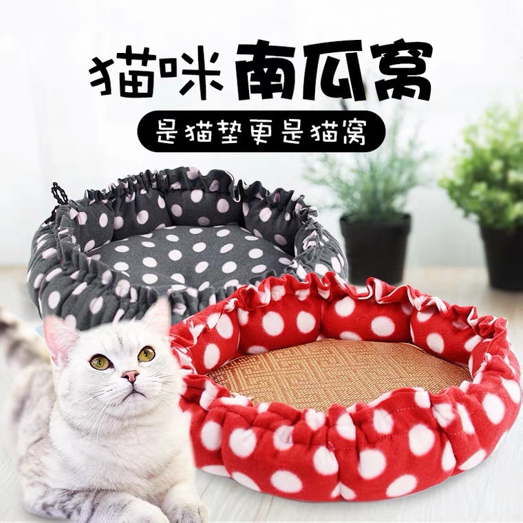 Питомник для домашних животных Круглый Питомник двойного назначения Питомник для кошек Коврик для кошек Большие, средние и маленькие собаки Всесезонный Универсальный тыквенный питомник с кулиской Коврик для питомника