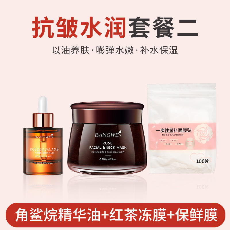 Красивый увлажняющий пакет для кожи (эссенционное масло скувалана Bangwei + желейная маска из черного чая Bangwei + маска для сохранения свежести)