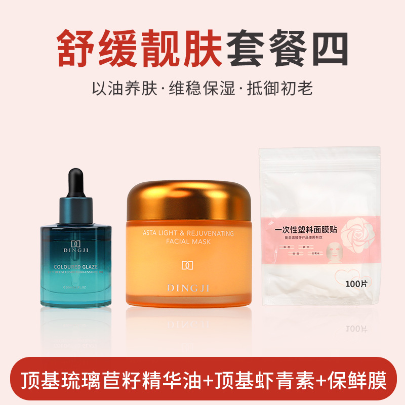 Успокаивающий и красивый пакет для кожи (глазированное успокаивающее эфирное масло на основе верхней основы + легкое омоложение на основе астаксантиновой основы + полиэтиленовая пленка)