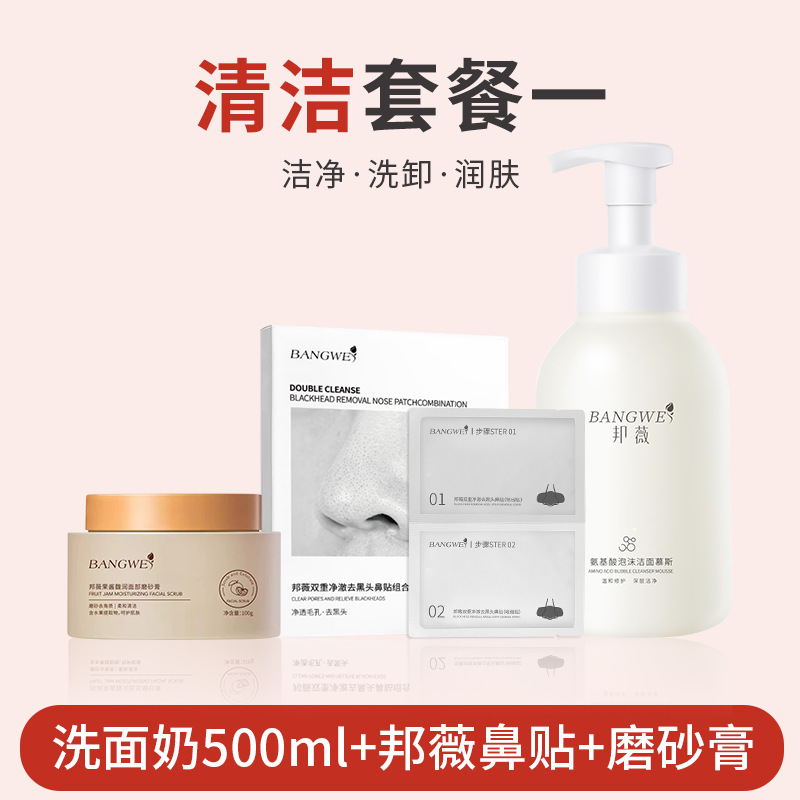Комплект для чистки (скраб Bangwei + очищающее средство для лица Bangwei 500 мл + пластырь для носа Bangwei)