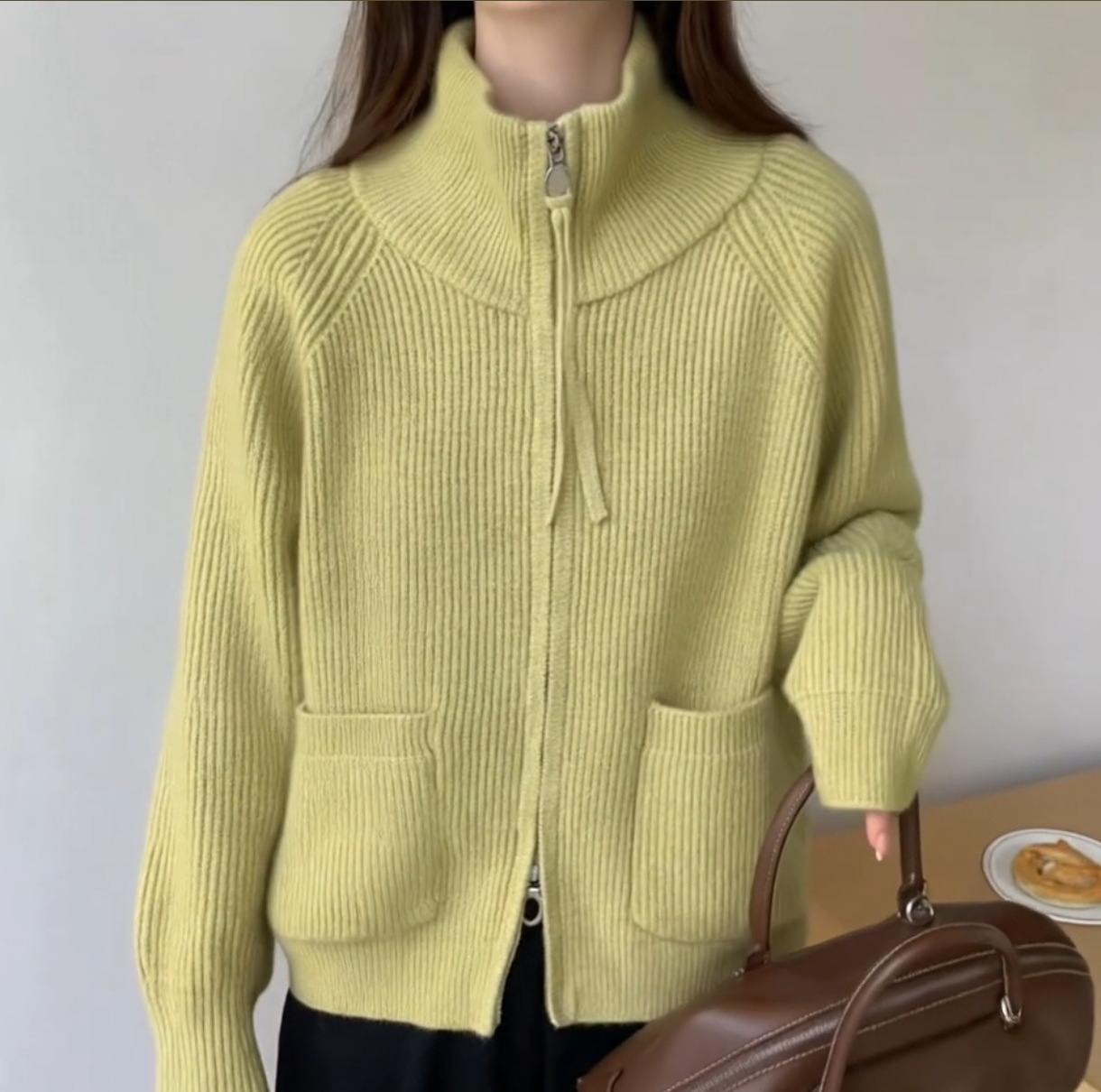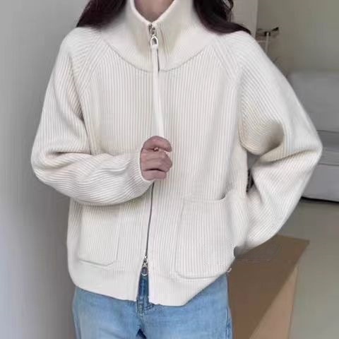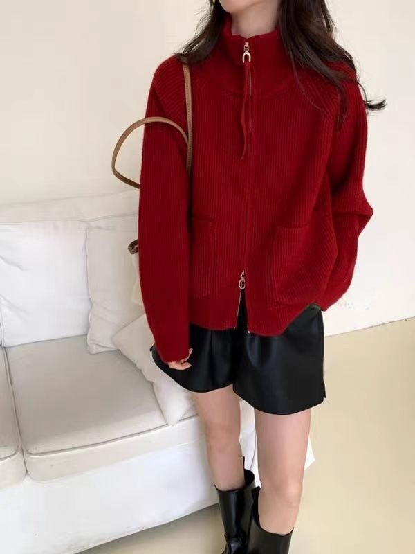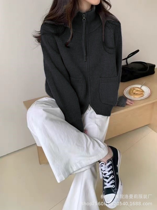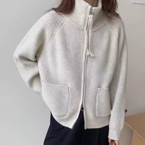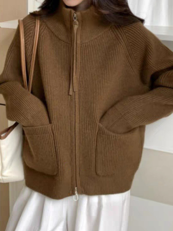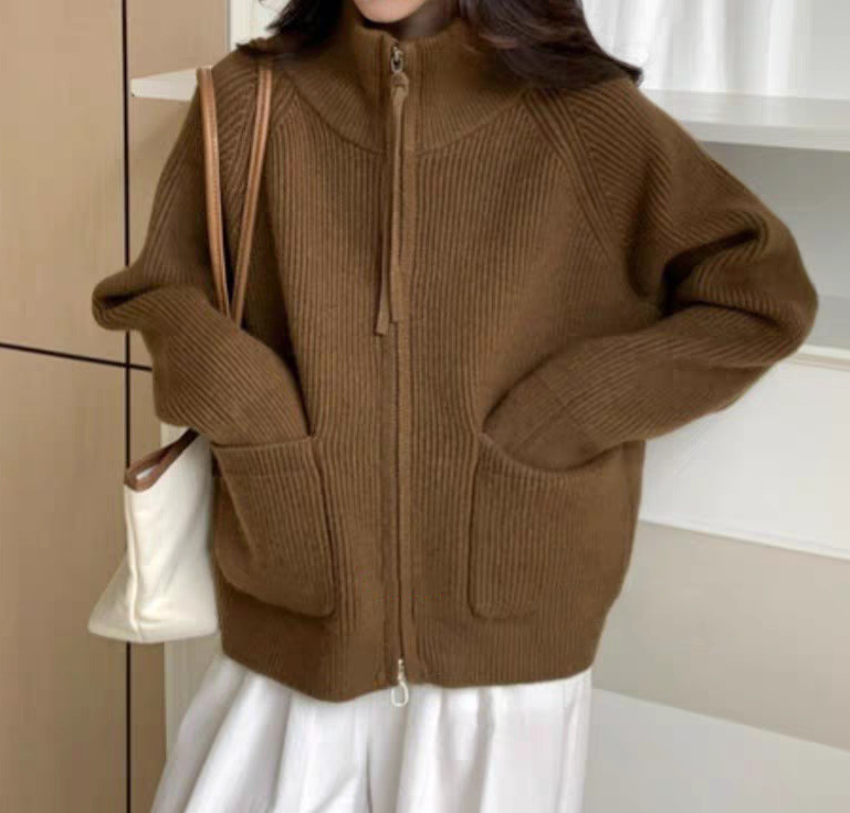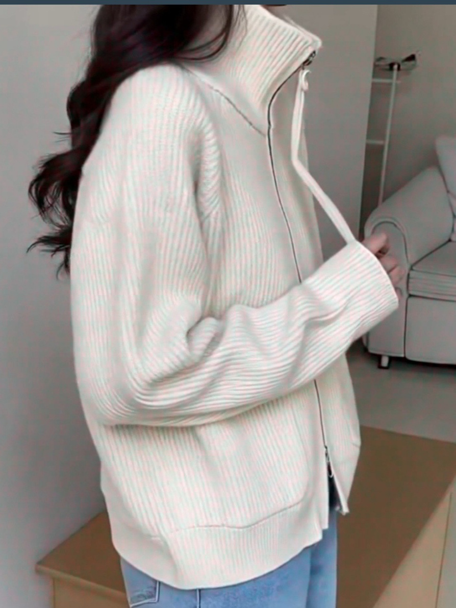 Главная страница > Женский вязаный кардиган-кофта больших размеров, свободного кроя, с воротником-стойкой, двумя молниями, длинными рукавами, на осень-зиму 2025 года, в стиле «ленивый»