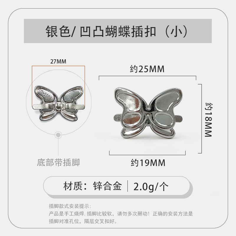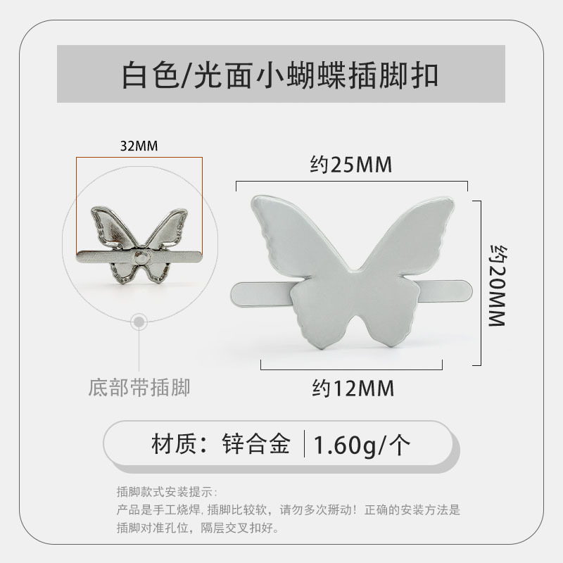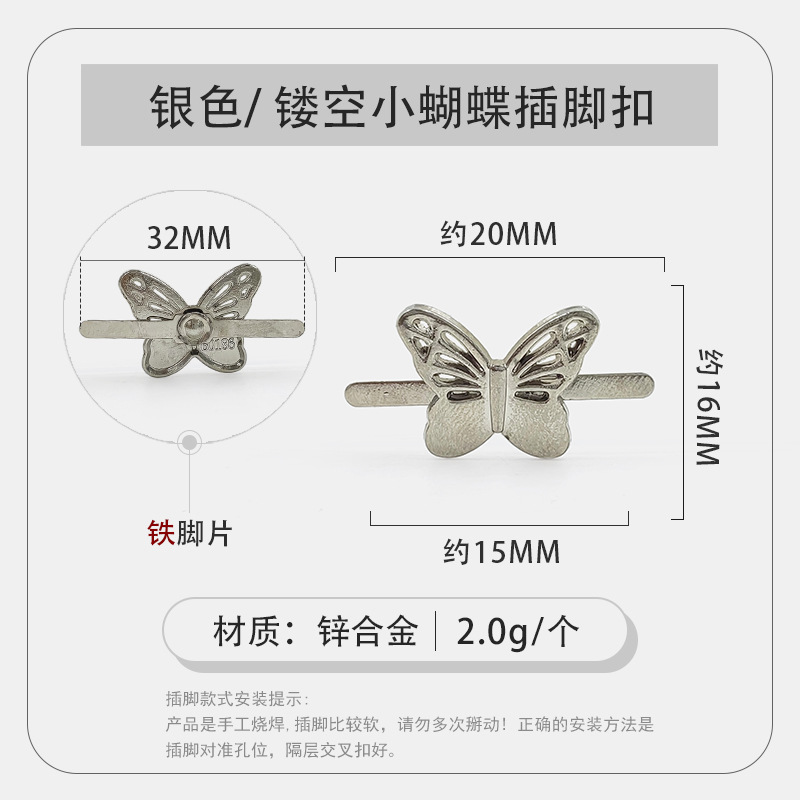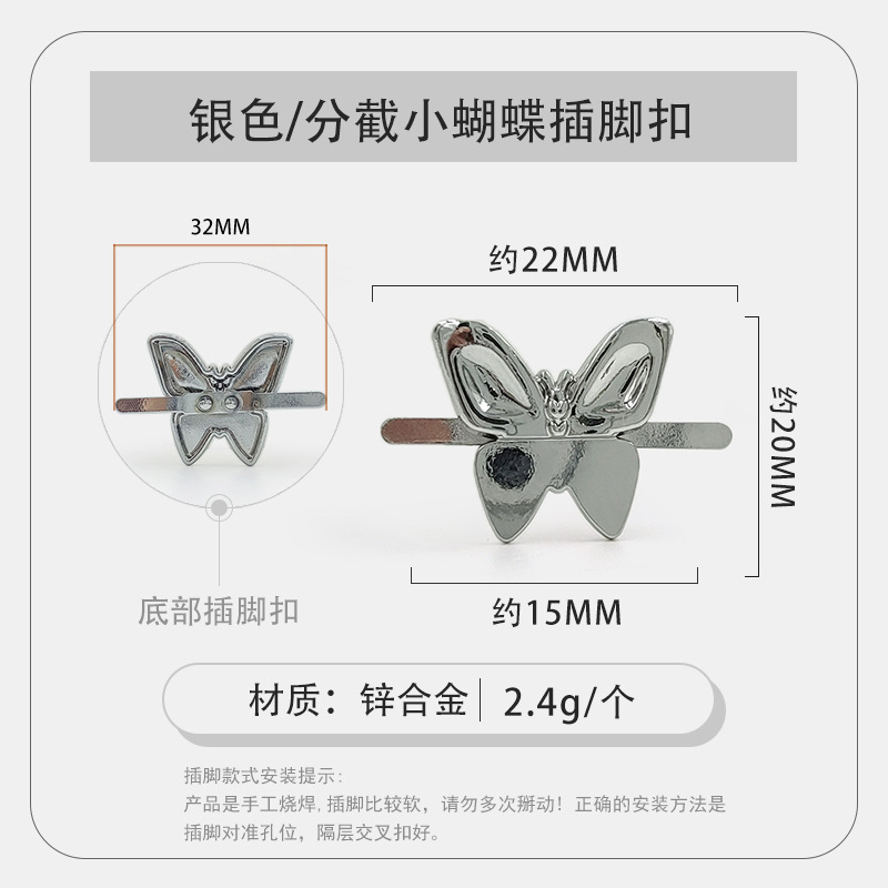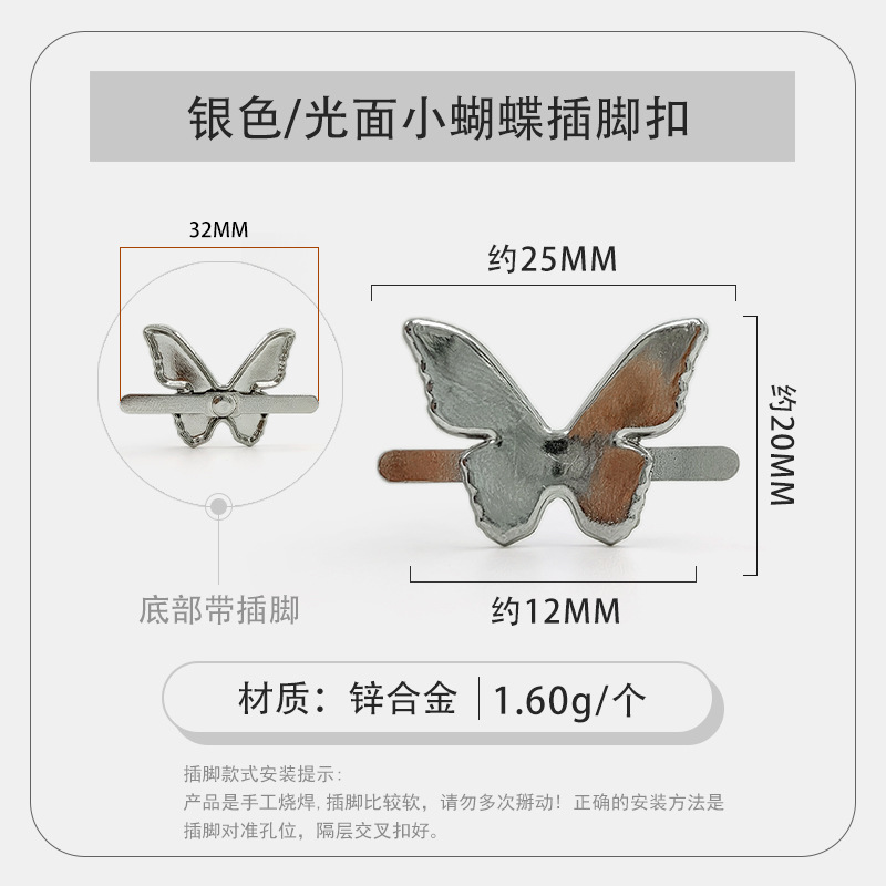 A1001-Серебряный глянцевая маленькая бабочка пряжка/шт