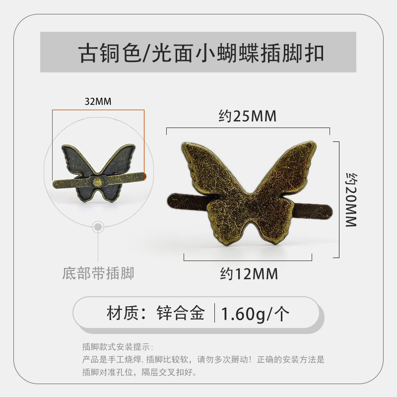A1004-Бронзовый глянцевый маленькая бабочка пряжка/шт