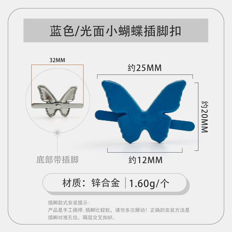 A1019-Синяя глянцеая маленькая бабочка пряжка/шт