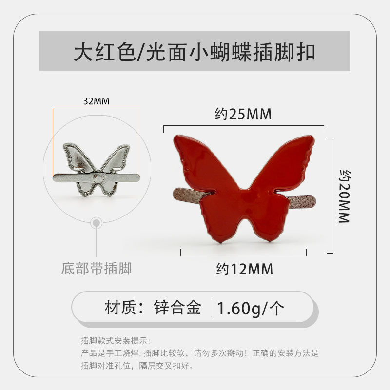 A1039-Большой красный глянцевый маленькая бабочка пряжка/шт